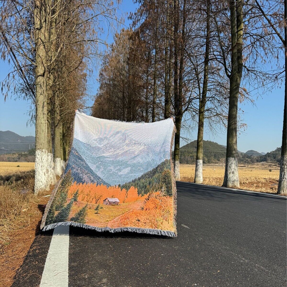 风景艺术油画床头隔断挂毯挂画上墙高级感客厅背景布沙发装 饰毯