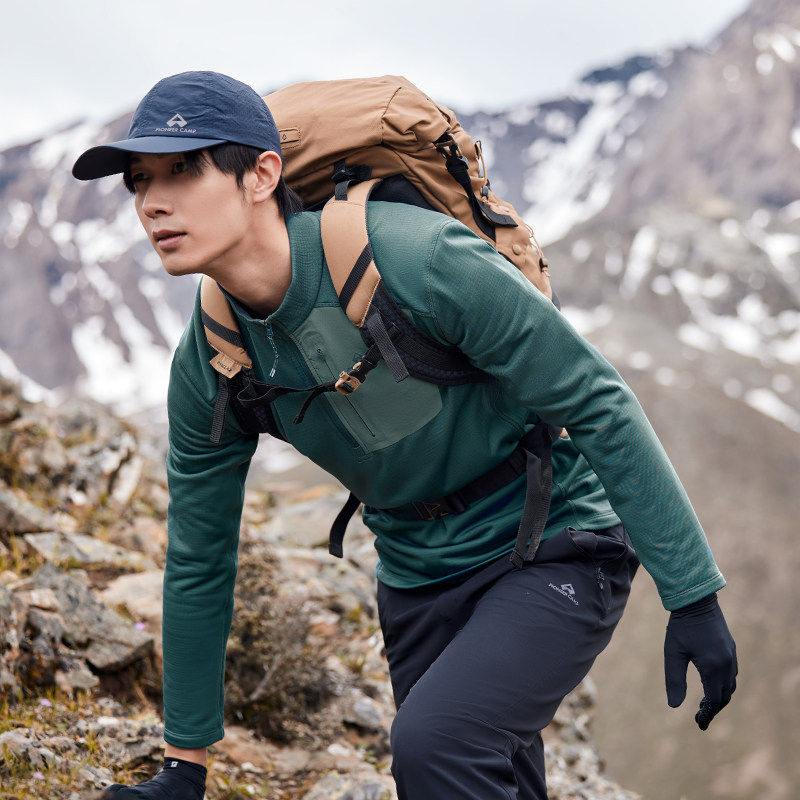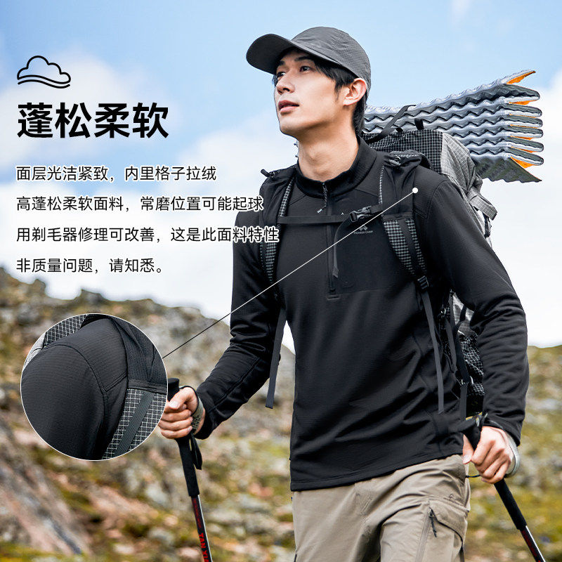 保暖透湿排汗摇粒绒长袖 拓路者轻量半拉链抓绒衣男秋季 格格绒