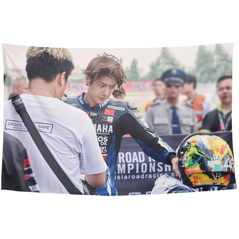 王一博摩托车赛车车手写真周边宿舍卧室墙装 饰背景布海报挂布挂毯