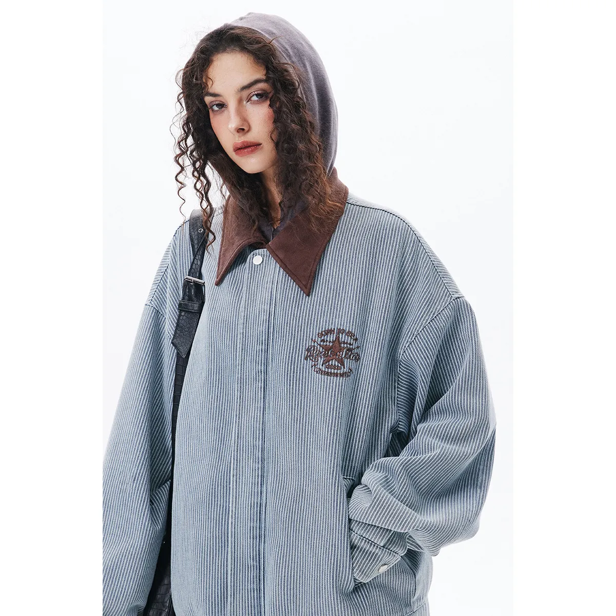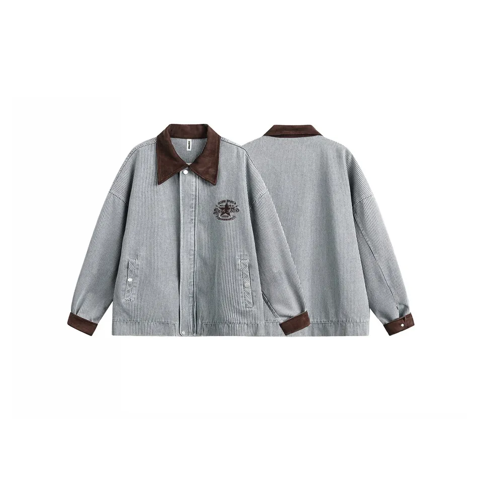 STAFFPICK美式 外套男女W206 复古重磅水洗条纹夹克宽松高级感工装