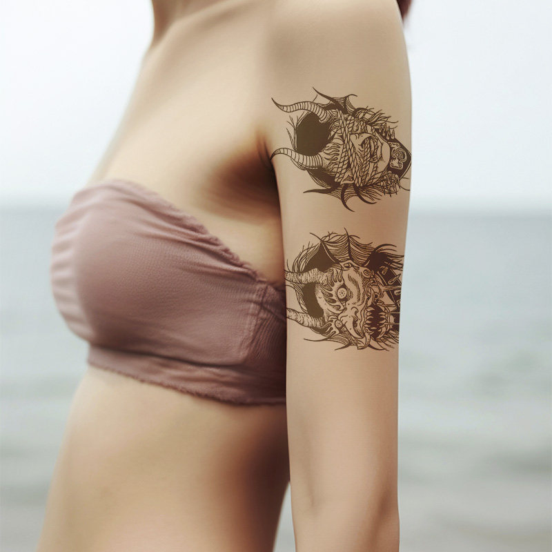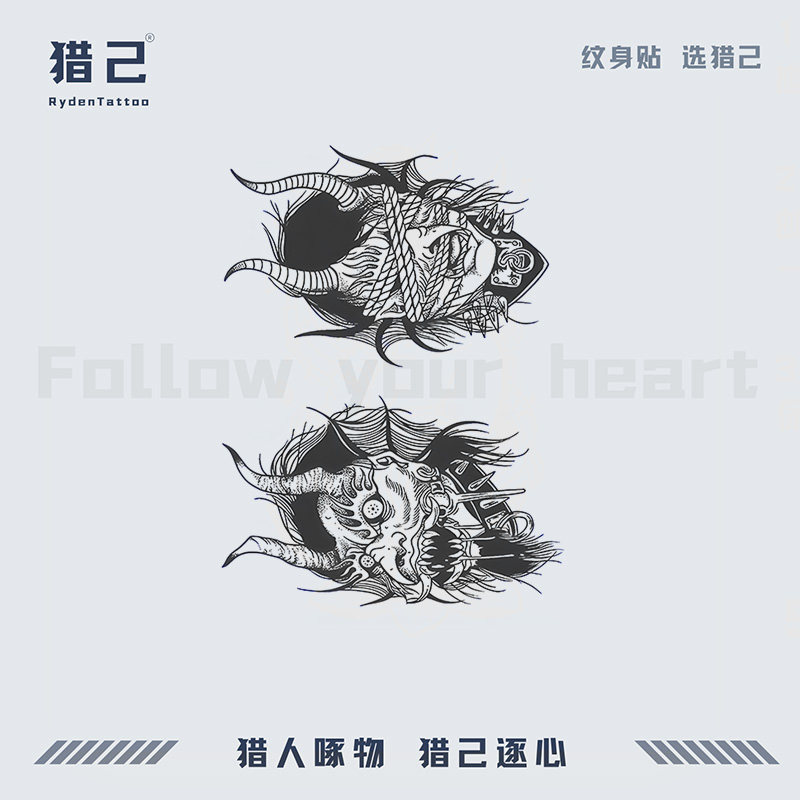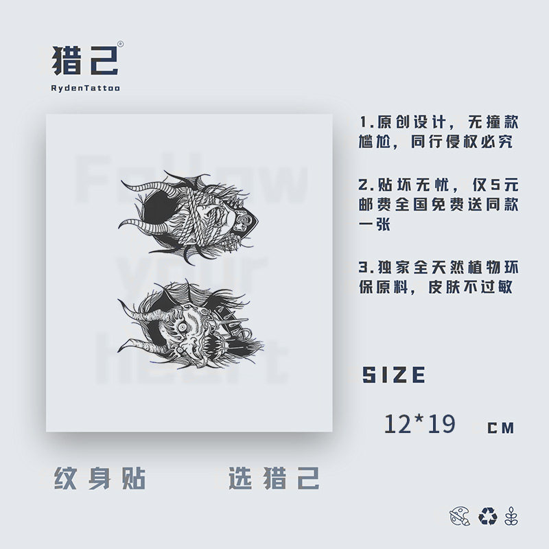 猎己 草本纹身贴防水防汗不反光手臂小腿脖子胸口半甲 兽面惊吓