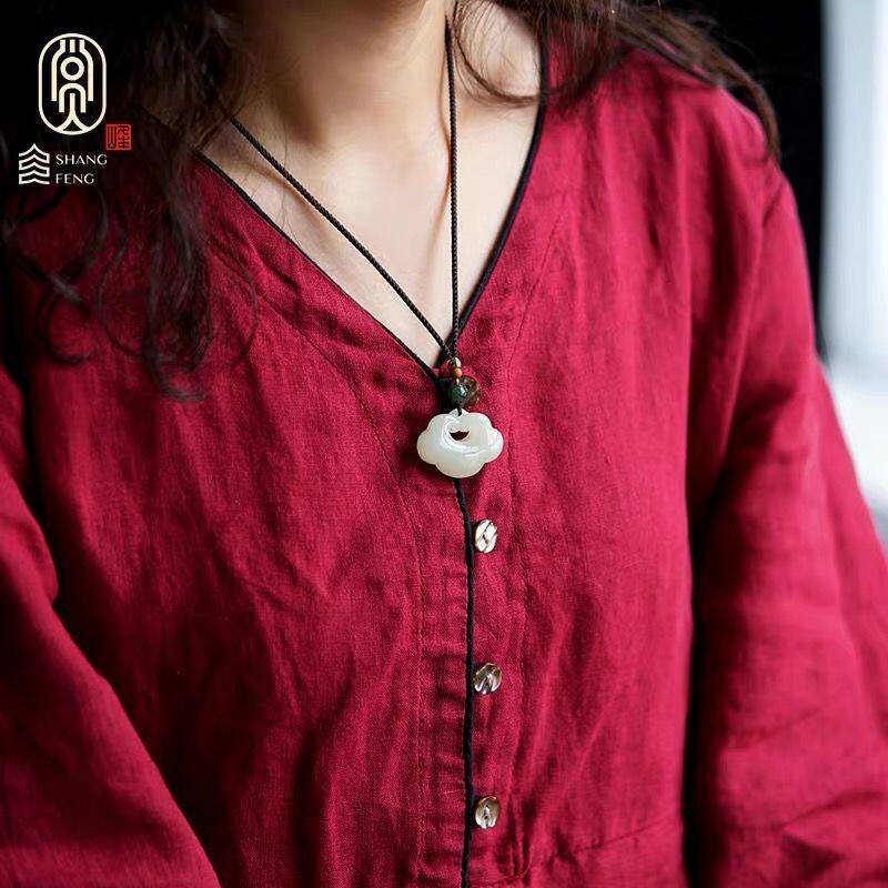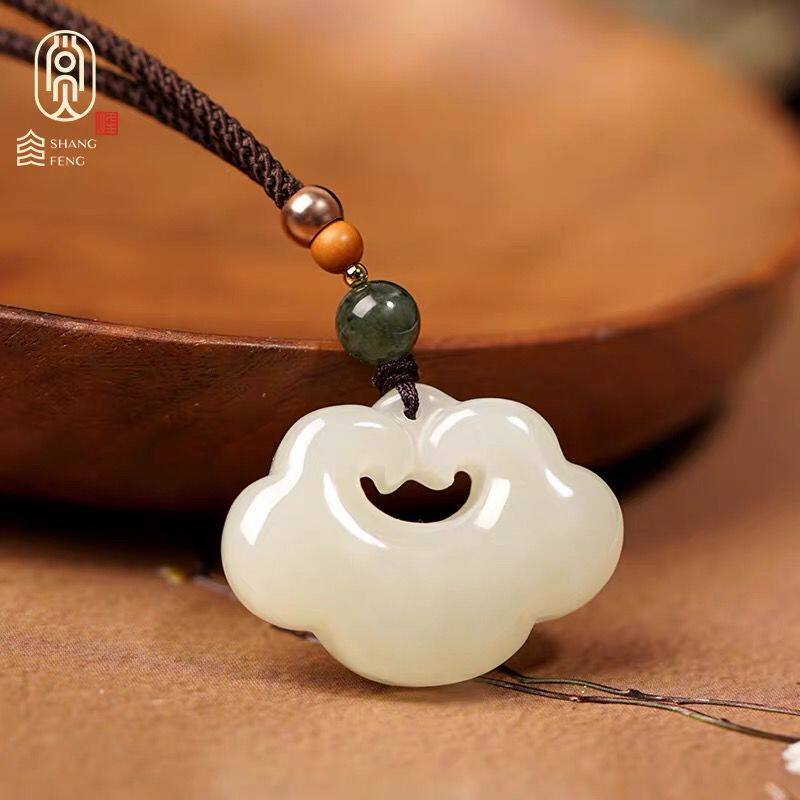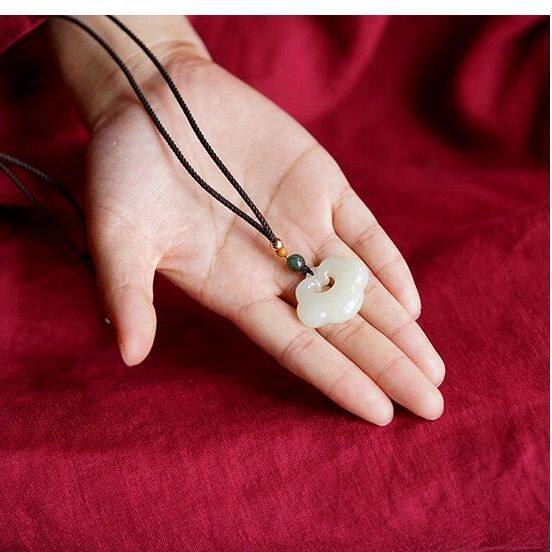 天然白玉平安如意锁吊坠男女祥云长命锁儿童宝宝玉石玉坠项链玉佩
