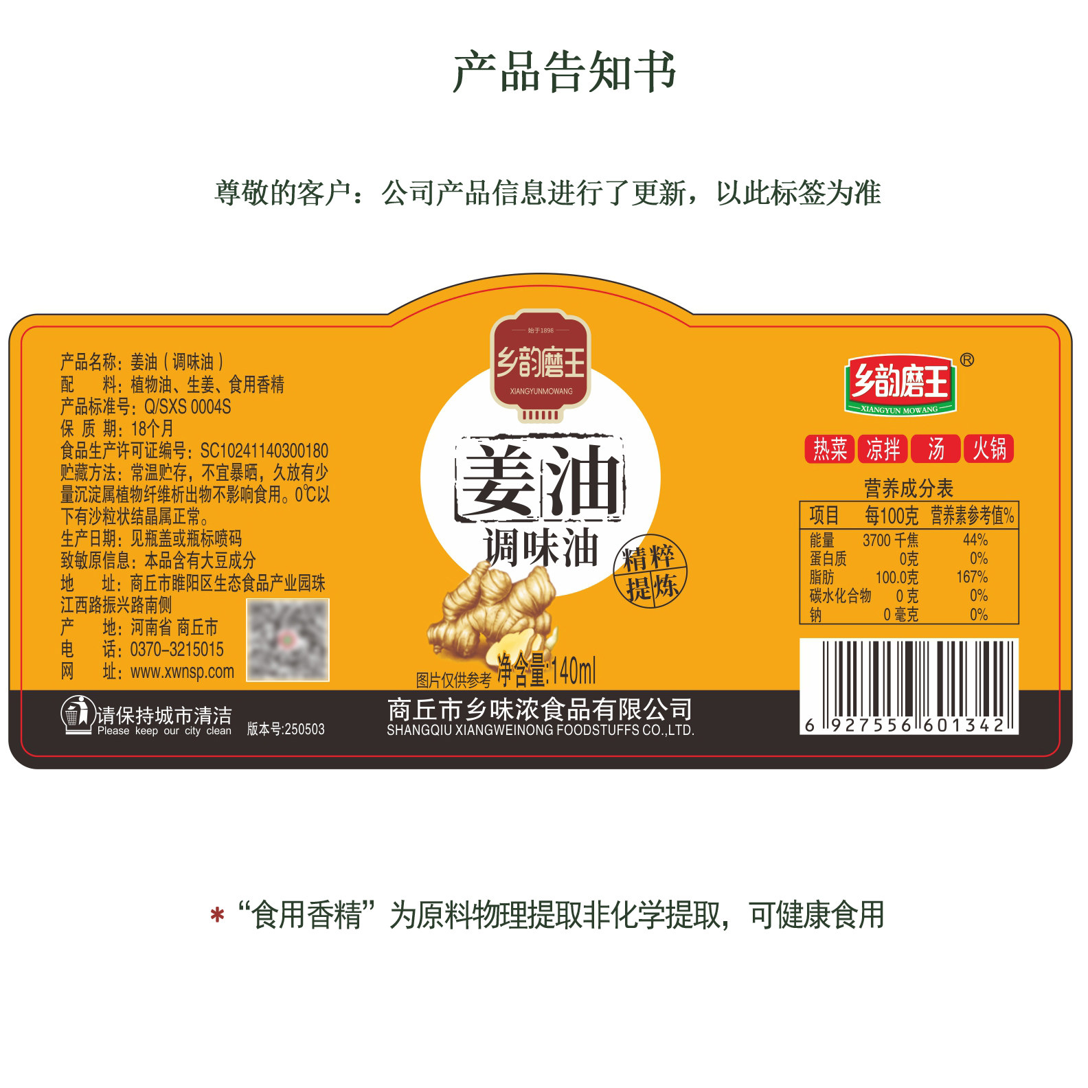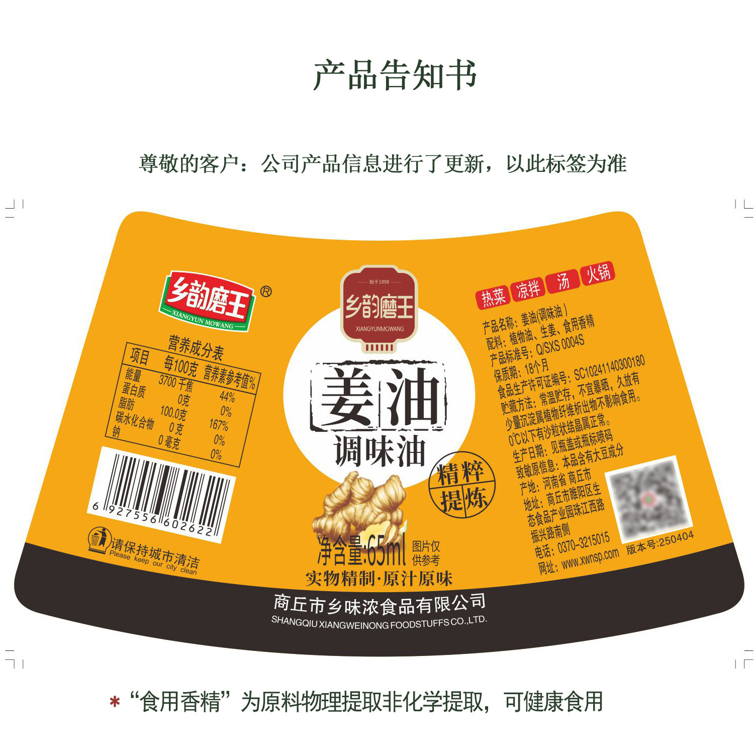 乡韵磨王食用姜油 家用炒菜饭店餐饮凉拌调味油烹饪火锅姜汁 商品标签: 发布时间:2026年03月13日 市 场 价:9.9 元 折 扣 价:9.9 元 所 在 地:河南 商丘 店铺掌柜:乡味浓食品官方企业店 去购买>> 下架了的话点我重新搜索 本站来源:淘宝(www.xiuda.net)购物与天猫(www.tianmaocn.com)是一个知名的电商平台,淘宝同时您也可以访问(www.taobwg.com)来发现更多精彩的购物选择。