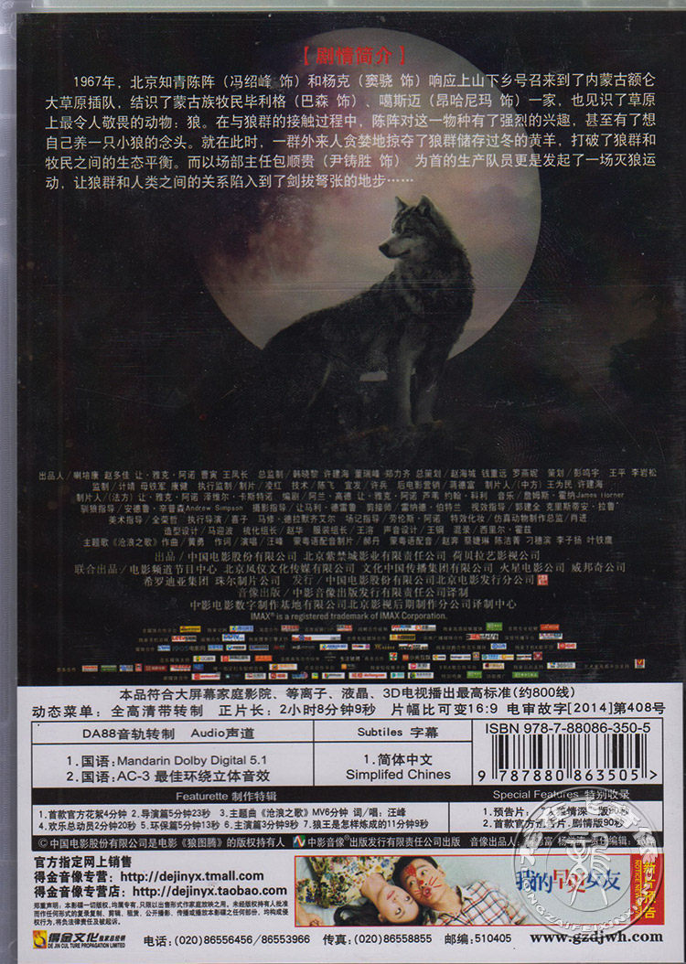 DVD9盒装 狼图腾 冯绍峰 窦骁昂 dvd碟片 现货正版 和妮玛 电影