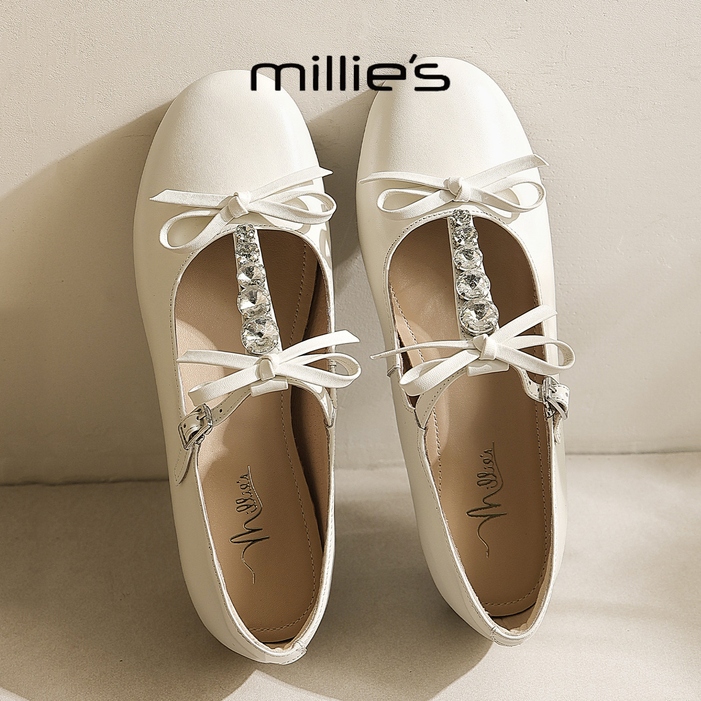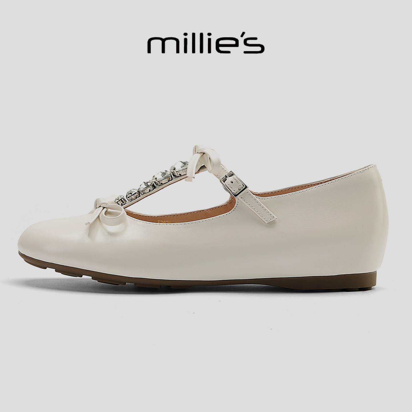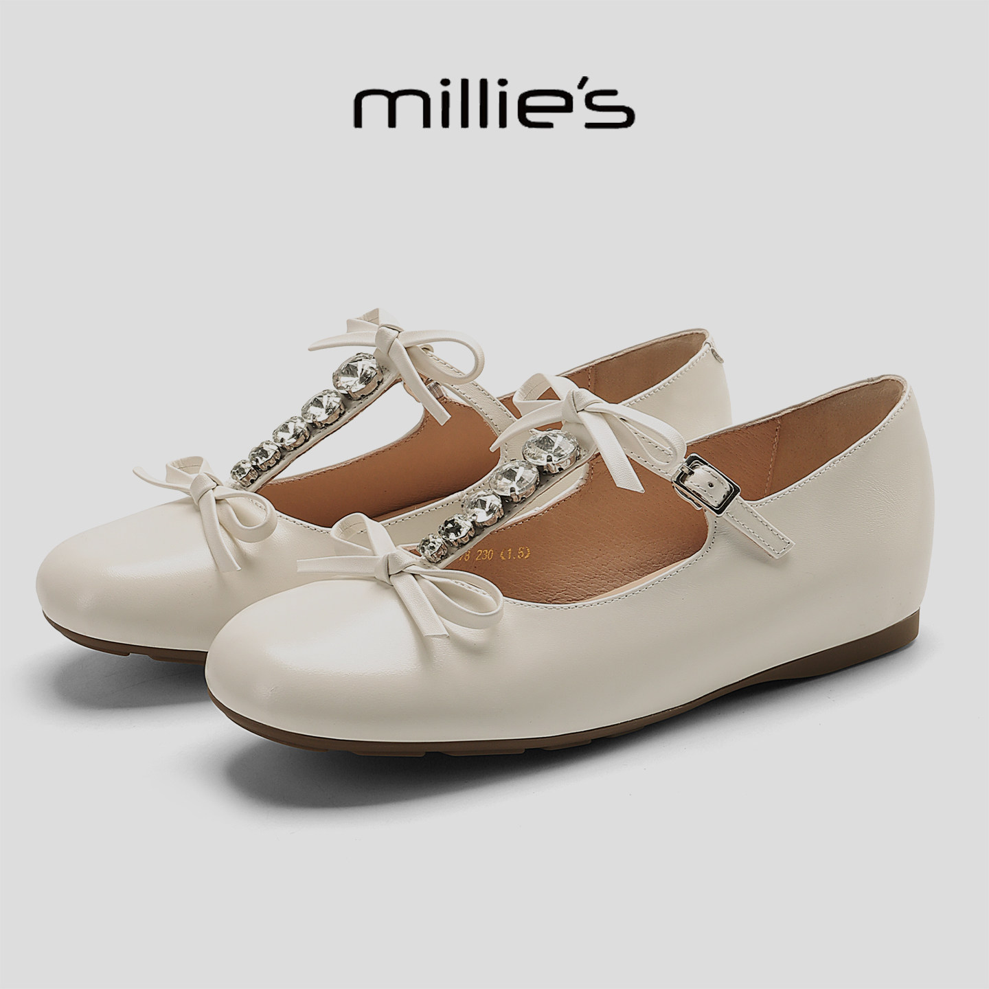 女水钻丁字扣平底百搭单鞋 MILLIE 甜美蝴蝶结玛丽珍鞋 妙丽春季