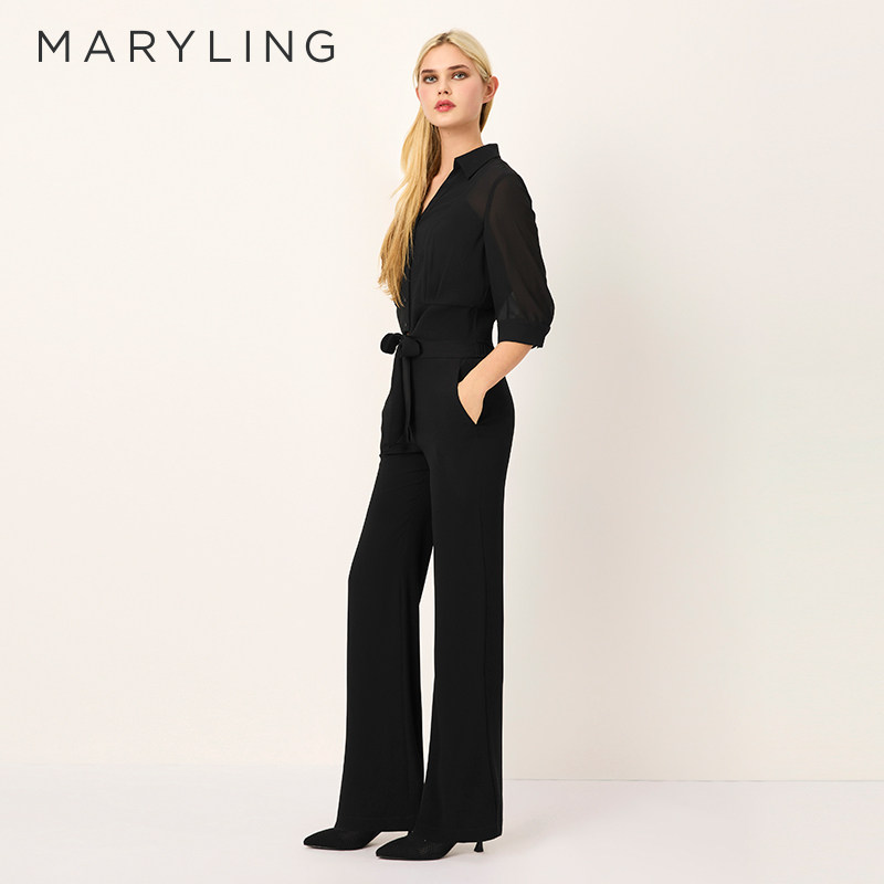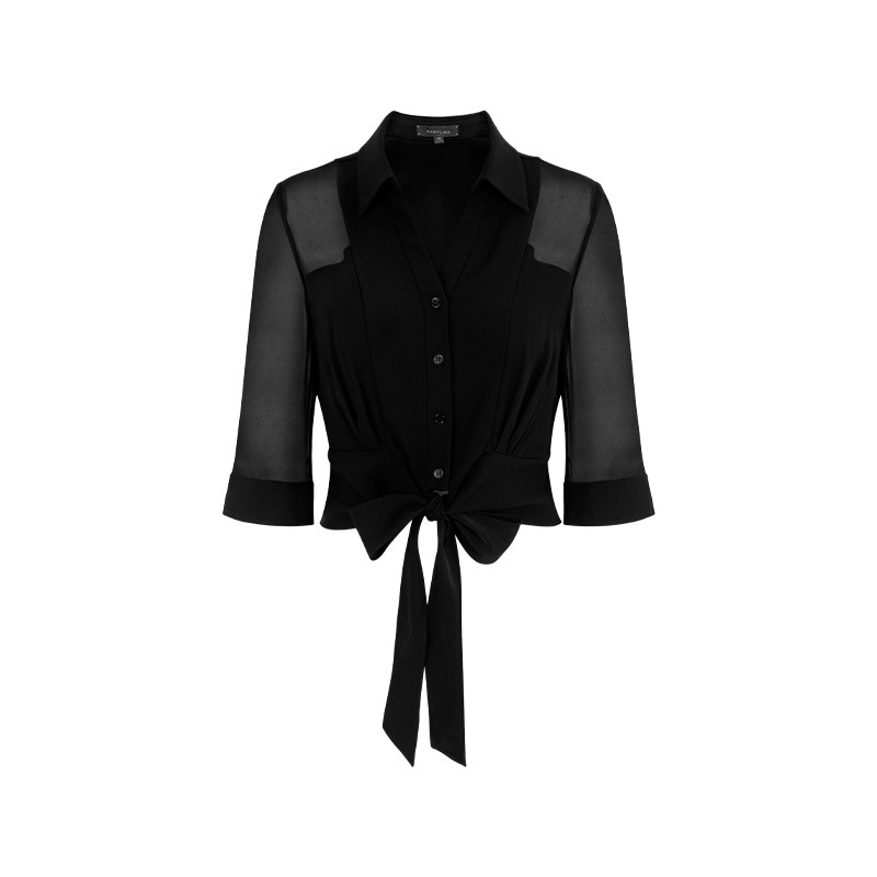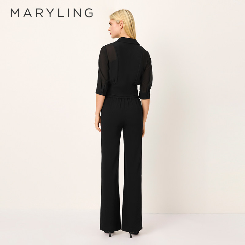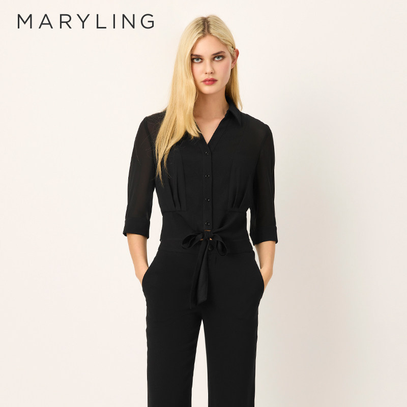 领短上衣A1FCW26540 绑带黑色V型衬衫 MARYLING玛俪琳2025春季 新品
