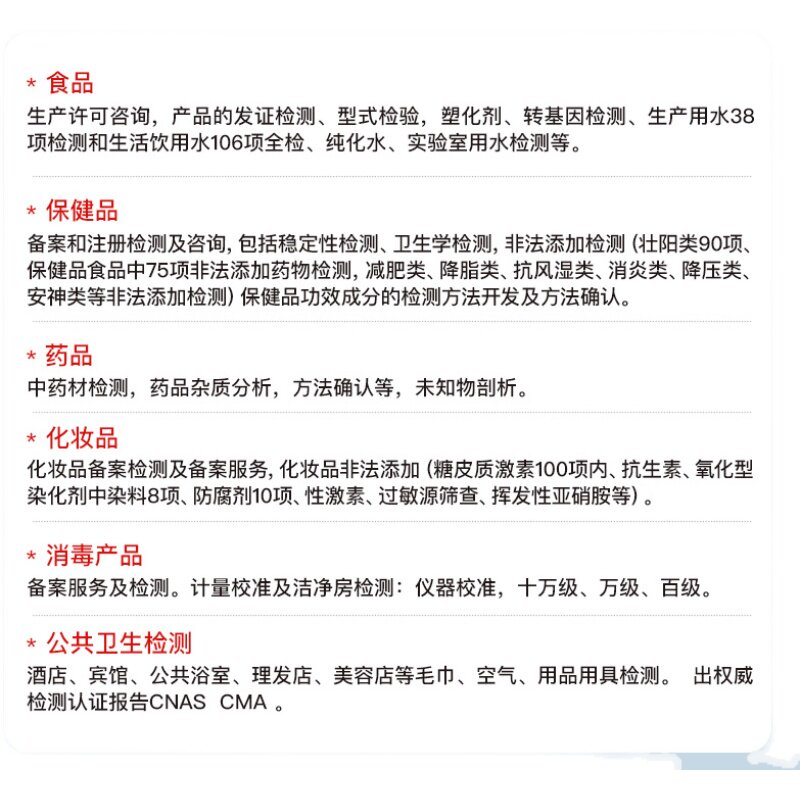 去购买>> 下架了的话点我重新搜索本站来源:淘宝(www.xiuda.net)购物与天猫(www.tianmaocn.com)是一个知名的电商平台,淘宝同时您也可以访问(www.taobwg.com)来发现更多精彩的购物选择。 CMA CNAS全国第三方质检检验检测报告软件测试电商招投标线上线下 水质检测服务机构第三方生活饮用纯化水井污海水CMA报告全国认可 质检报告食品微生物服装 面料产品成分检验机构京东申诉抖音入驻 狗粮猫粮检测报告宠物食品幼犬成年犬通用食品检验检测报告 质检第三方机构服装 土壤重金属铜件不锈钢塑料产品质量招检测报告 生产用水水质检测报告38项饮用水检纯化水实验室用水检测检验报告 消毒产品化妆品危化物品空气净化设备消杀除菌防护检验检测报告 正版 清华大学出版 书 黄国亮 社 生物医学检测技术与临床检验 英科艾滋病试纸检测HIV梅毒乙丙肝四项HPV传染病四联卡检验试剂 食用油酸价检测试纸卡快速试剂盒地沟油检验仪器油脂酸败测定 三秒识别真伪 不锈钢检测药水 316 304 无需通电 鉴真剂鉴别好坏 梁硕不锈钢焊缝检测尺焊接检验尺焊脚焊缝规焊接测量尺坡口深度尺 得威斯伸缩空鼓锤空鼓锤检验锤响鼓锤验房杆验房工具锤子检测锤 力精 测试鉴别液不通电锰含量超标304鉴真剂测定 不锈钢检测药水 得威斯伸缩空鼓锤空鼓锤检验锤响鼓锤验房杆验房工具锤子检测锤