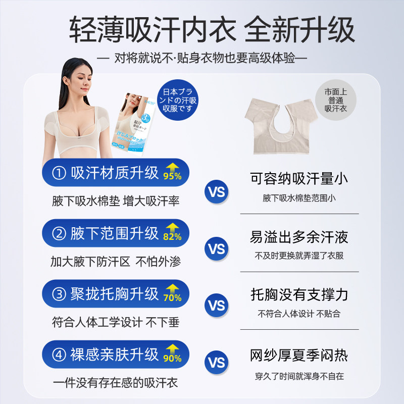 日本RAVIS腋下吸汗背心超薄网纱隐形透气无痕腋窝防止汗吸汗内衣