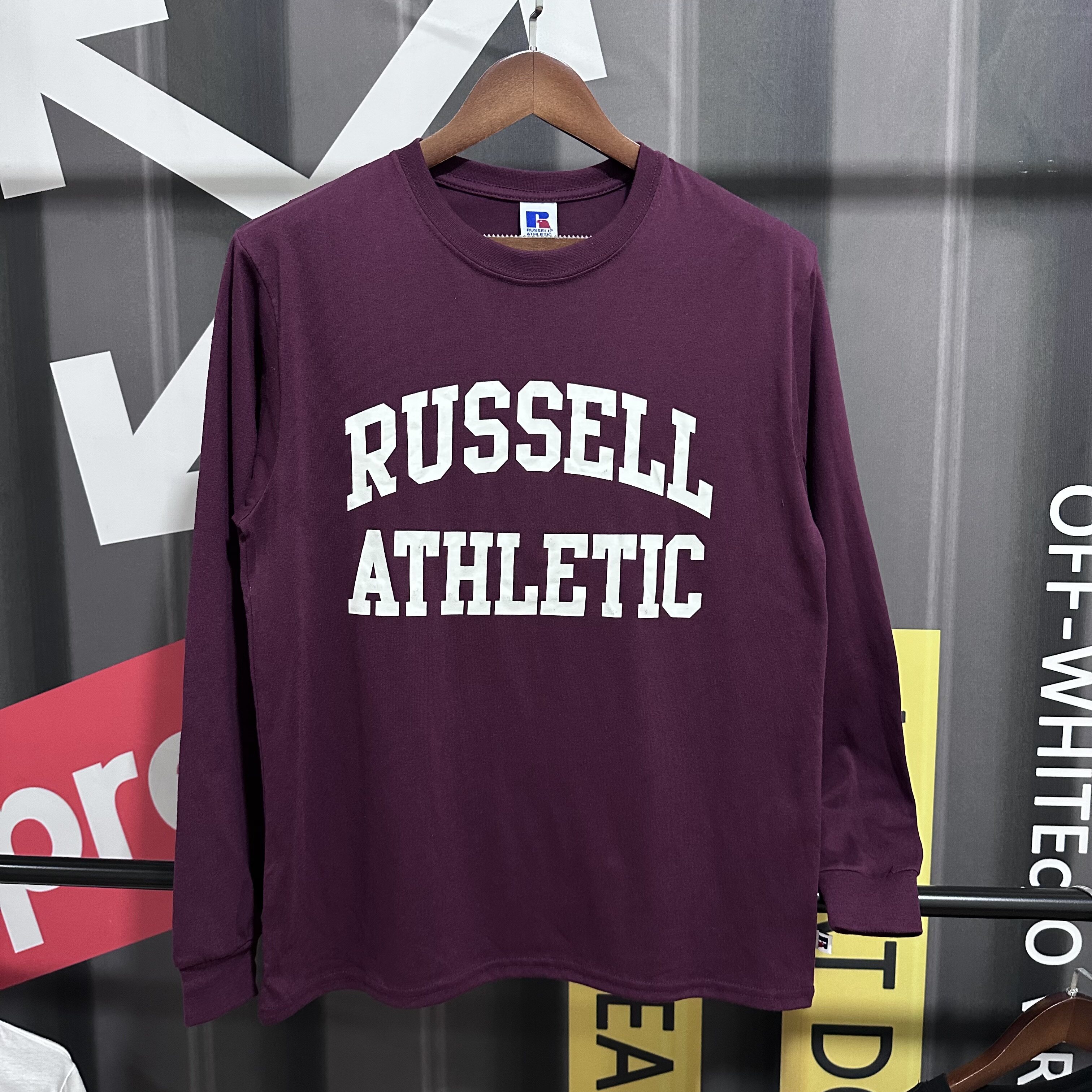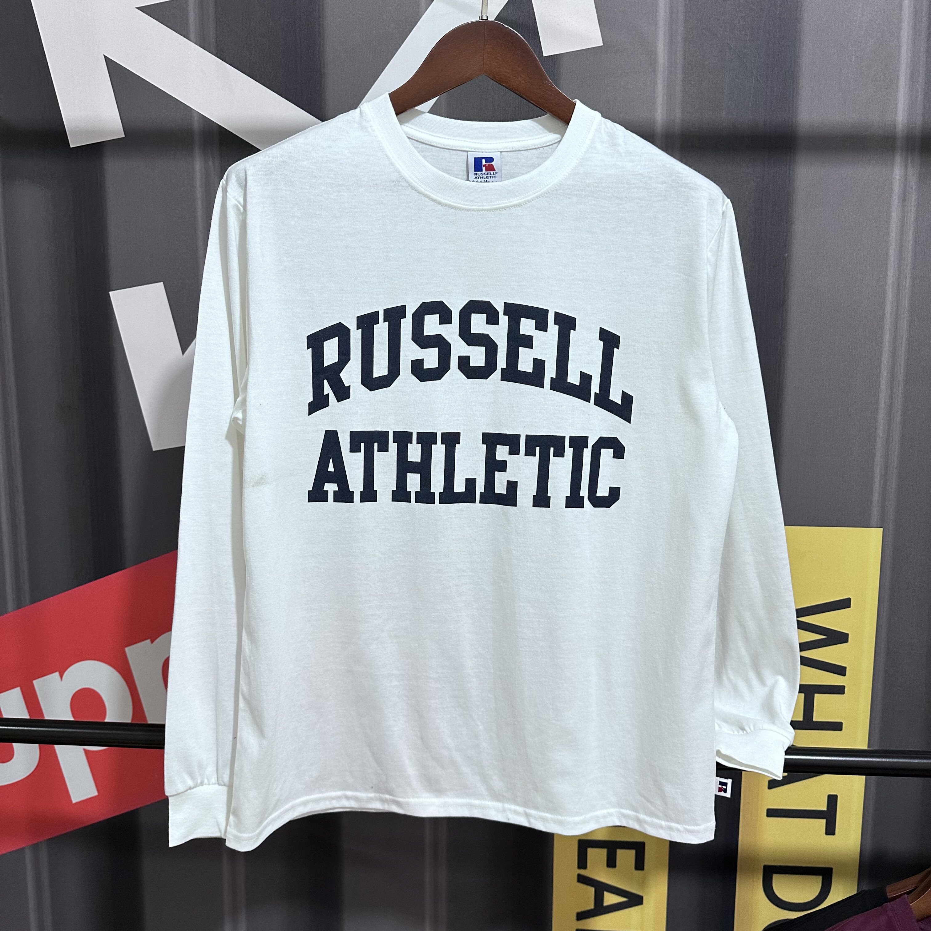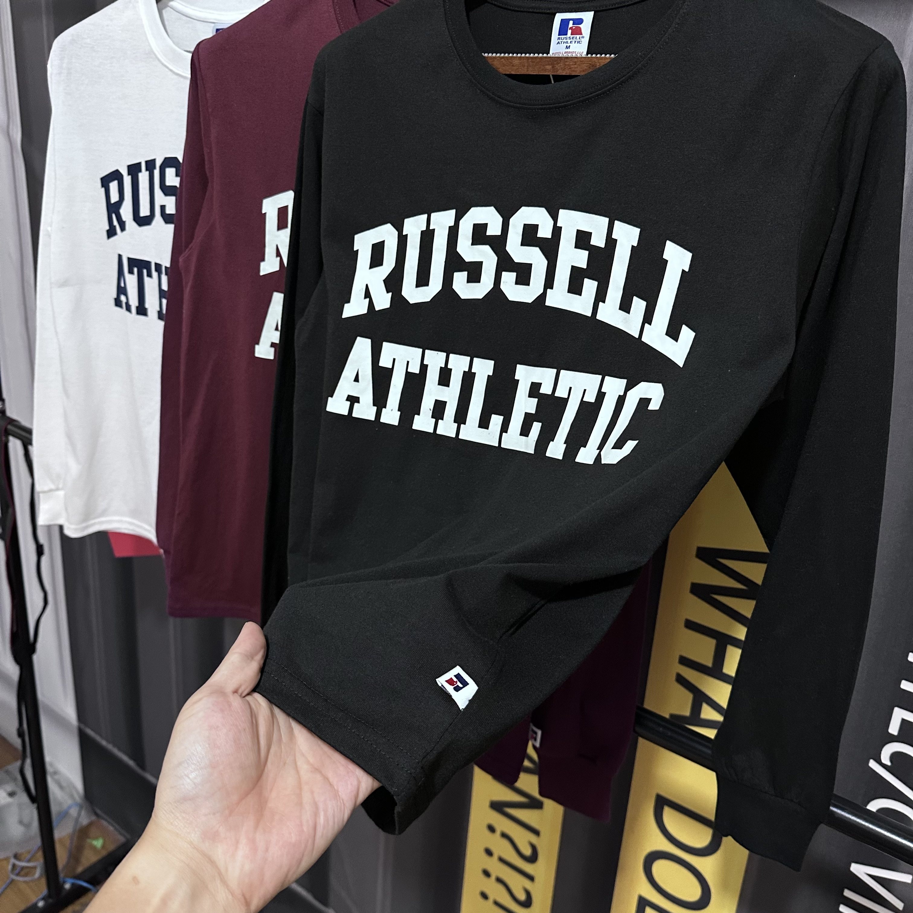 休闲宽松舒适长袖 棉质美式 T恤 老美牌罗素字母印花圆领长袖 日单