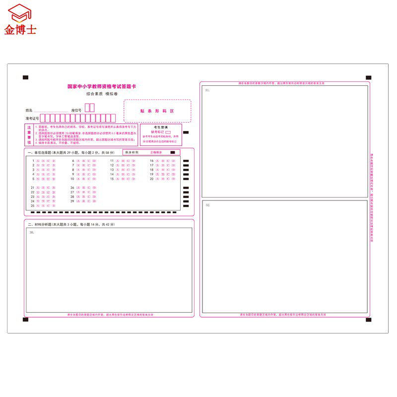 中小学教师资格考试作文纸教师综合素质知识能力考试作文答题卡纸 商品标签: 发布时间:2026年03月07日 市 场 价:7.9 元 折 扣 价:7.9 元 所 在 地:天津 店铺掌柜:金博士文化 去购买>> 下架了的话点我重新搜索 本站来源:淘宝(www.xiuda.net)购物与天猫(www.tianmaocn.com)是一个知名的电商平台,淘宝同时您也可以访问(www.taobwg.com)来发现更多精彩的购物选择。