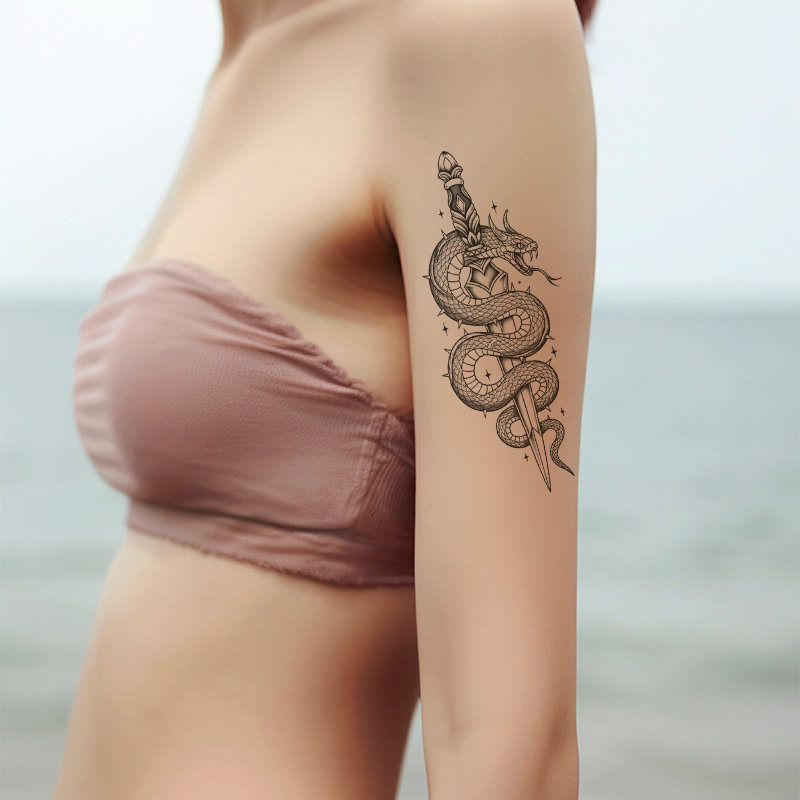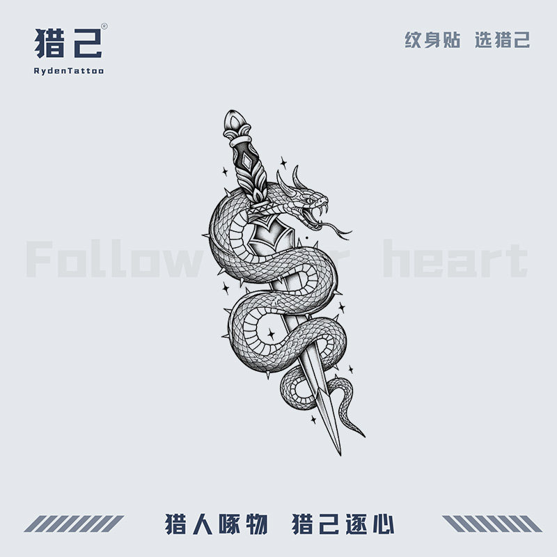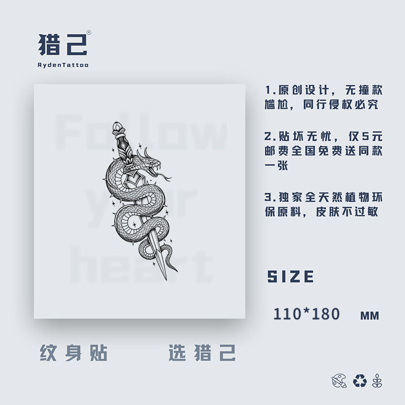 猎己 草本纹身贴防水防汗不反光手臂小腿脖子胸口半甲 蛇剑共魂