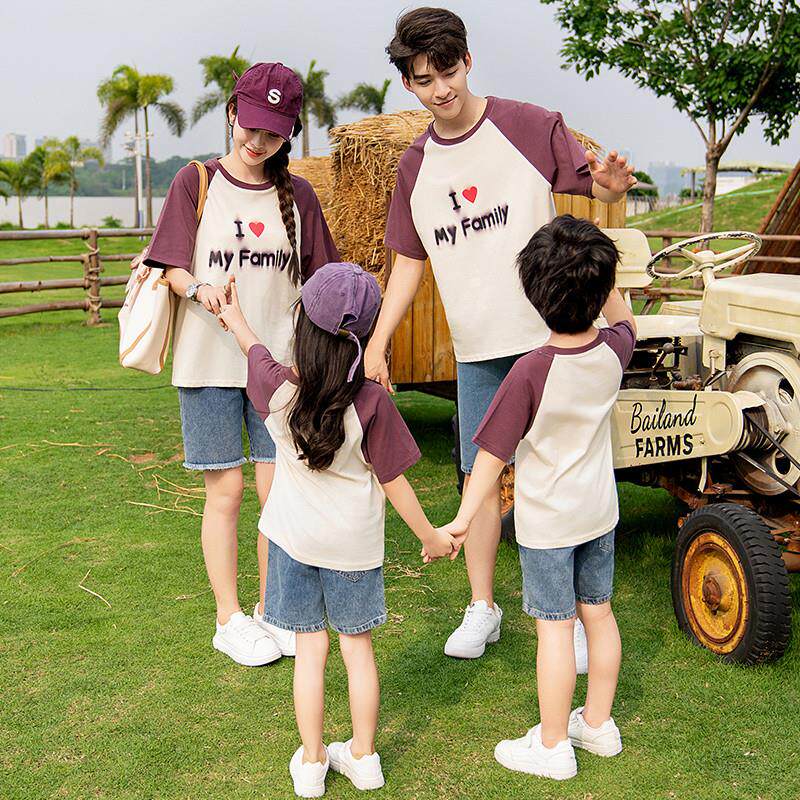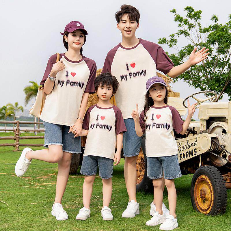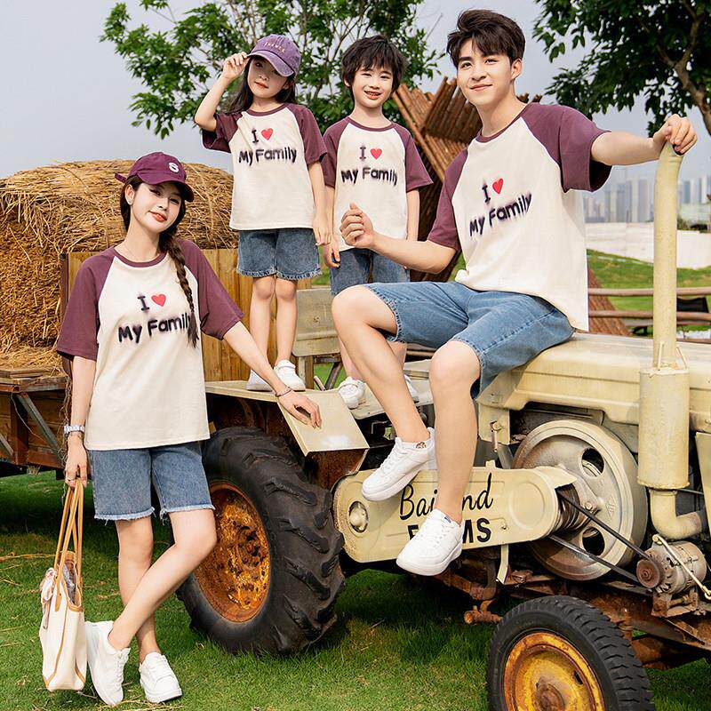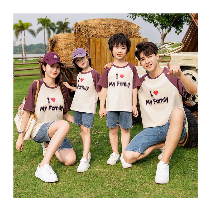一家三口四口母子母女家庭夏天季 亲子装 T恤套装 高端纯棉短袖 夏装