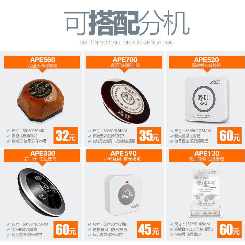 去购买>> 下架了的话点我重新搜索本站来源:淘宝(www.xiuda.net)购物与天猫(www.tianmaocn.com)是一个知名的电商平台,淘宝同时您也可以访问(www.taobwg.com)来发现更多精彩的购物选择。 家庭呼叫器老人无线家用呼唤铃超远距离电子呼救器紧急门铃一拖二 老人呼叫器无线家用远距离病人紧急报警器一键呼救按铃看护呼唤铃 排队机取号机叫号器呼叫器无线叫号排号器取号器麻辣烫餐厅取小票小型医院诊所医疗喊号报号机简易取票机系统 电池专用款 直流远距离门铃无线家用遥控一拖二老人病人门钟呼叫器 新款 远距离穿墙家用自发电无线门铃60首铃声免电池智能老人呼叫器 门铃无线家用超远距离穿墙防水电子遥控交流门玲老人呼叫器一拖二 不用电线 新款 防水远距离遥控 无线家用门铃 老人呼叫器 数码 免电池家用自发电无线门铃可穿墙远距离遥控门铃大音量老人呼叫器 独居老人呼叫器远程WIFI无线手机APP通知家用紧急一键报警呼救器 回头客无线门铃一拖二拖一家用门铃远距离电子门铃智能遥控呼叫器 老人呼叫器无线家用远距离遥控床头按铃呼唤铃一键紧急呼救报警器 包厢柯铃服务铃无线呼叫器包间远距离呼唤器餐饮棋牌呼叫器 无线门铃家用直流电全用电池不插电远距离老人呼叫器移动无线门钟 无线语音对讲门铃超远距离别墅双向通话双工对讲机老人一键呼叫器 无线呼叫器茶楼餐厅棋牌室咖啡厅医院诊所呼唤器服务铃数显呼叫铃
