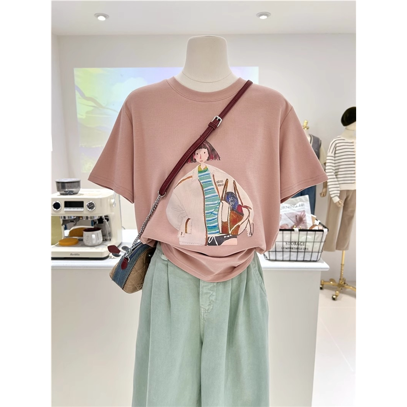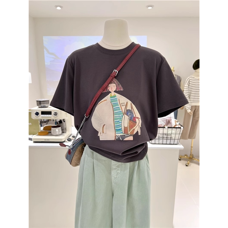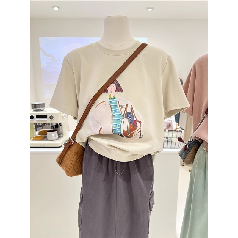 复古chic港味纯棉短袖 oversize设计感宽松上衣 正肩t恤女ins潮夏季