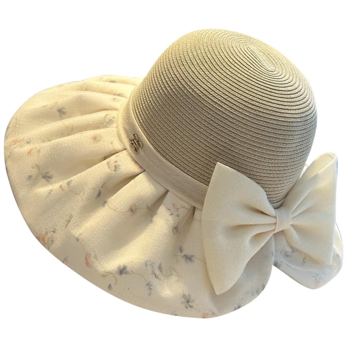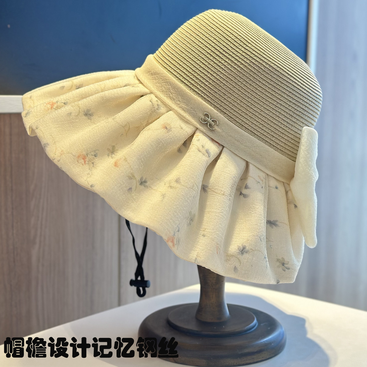 水墨中国风渔夫帽子女春夏季 防晒遮阳帽透气印花蝴蝶结拼接太阳帽