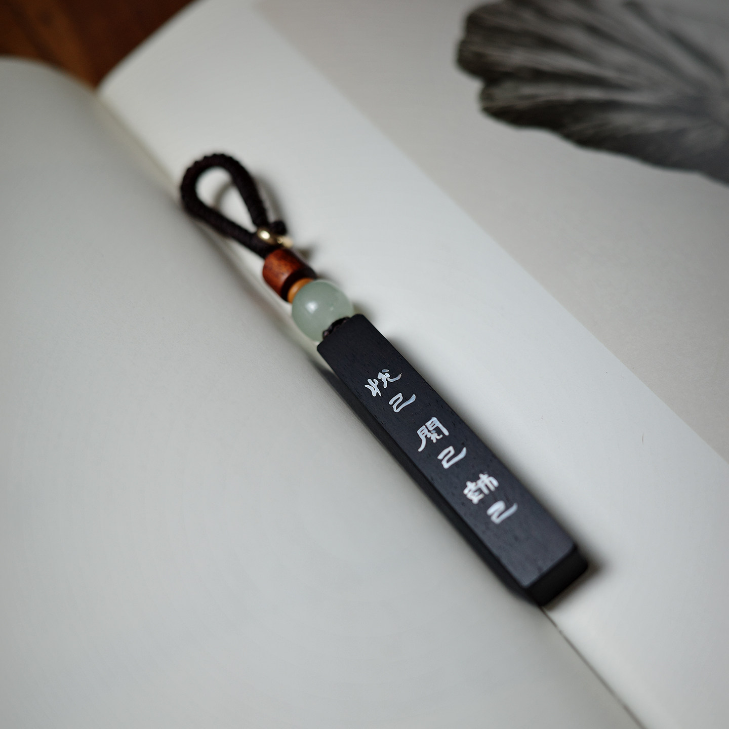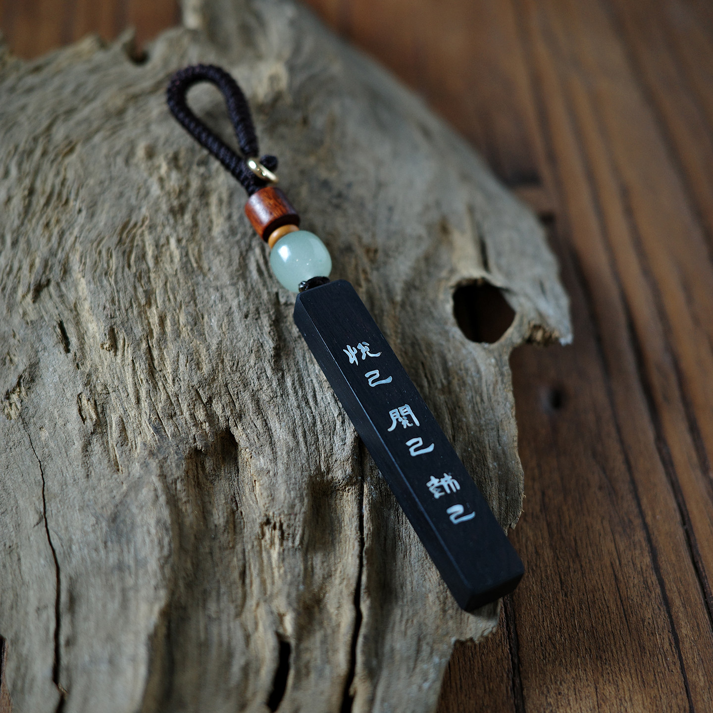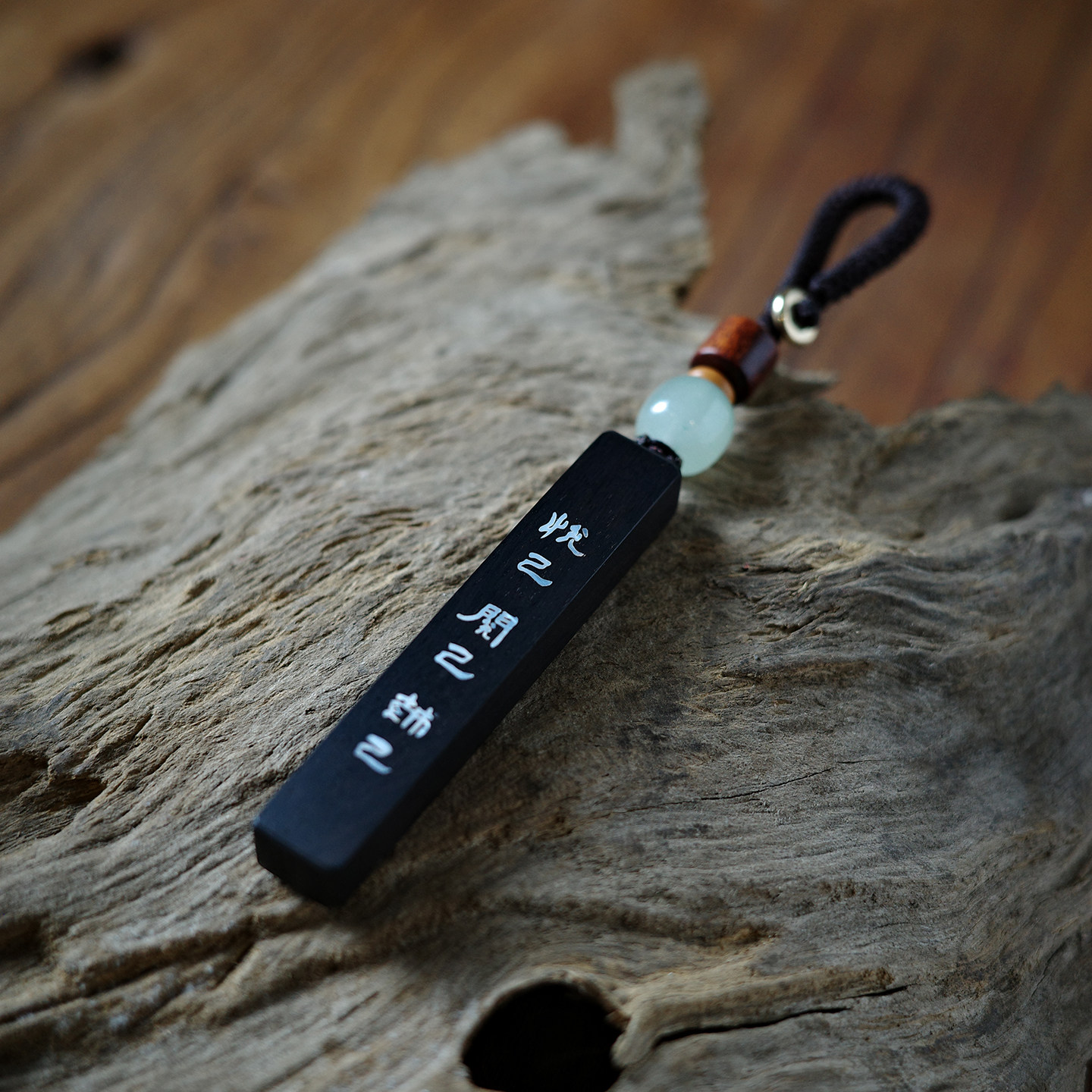 「悦己」古风黑檀木镶贝壳个性 创意手工钥匙扣挂件精致定制