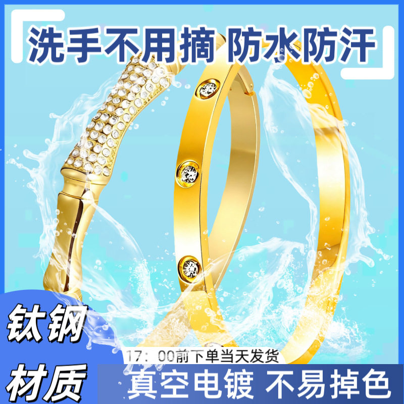 简约百搭不掉色手环 时尚 新品 爱心铸造不锈钢手镯女生轻奢感