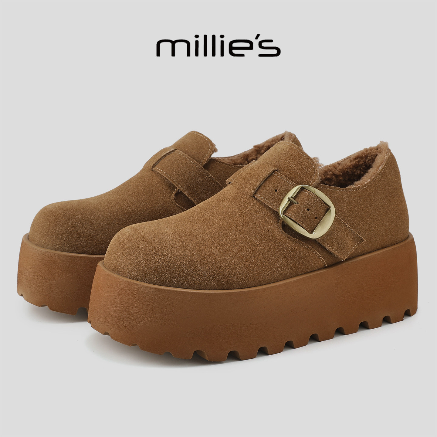 冬季 妙丽新款 加绒保暖勃肯鞋 复古皮带扣时尚 女 MILLIE 休闲棉鞋