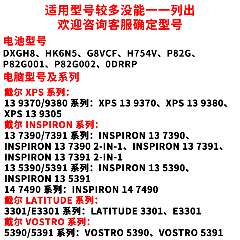 XPS 9370 9380 全新戴尔 P82G 5390 HK6N5 DXGH8笔记本电池 XPS13
