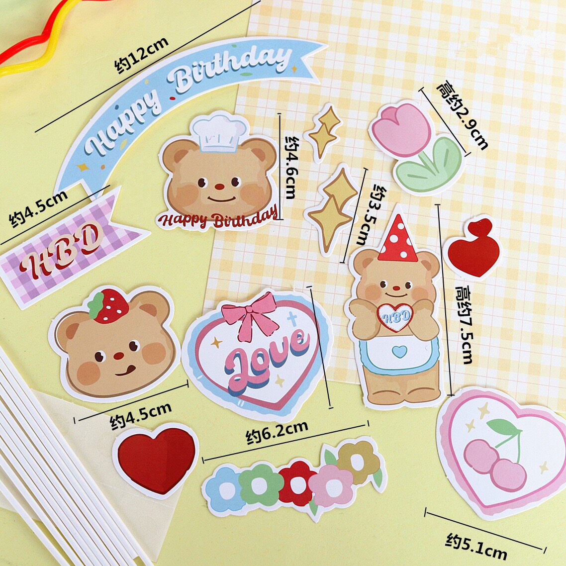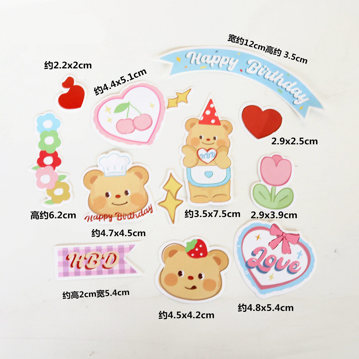 扮款 烘焙蛋糕装 饰可爱黄油小熊复古爱心HB生日快乐蛋糕甜品插件装