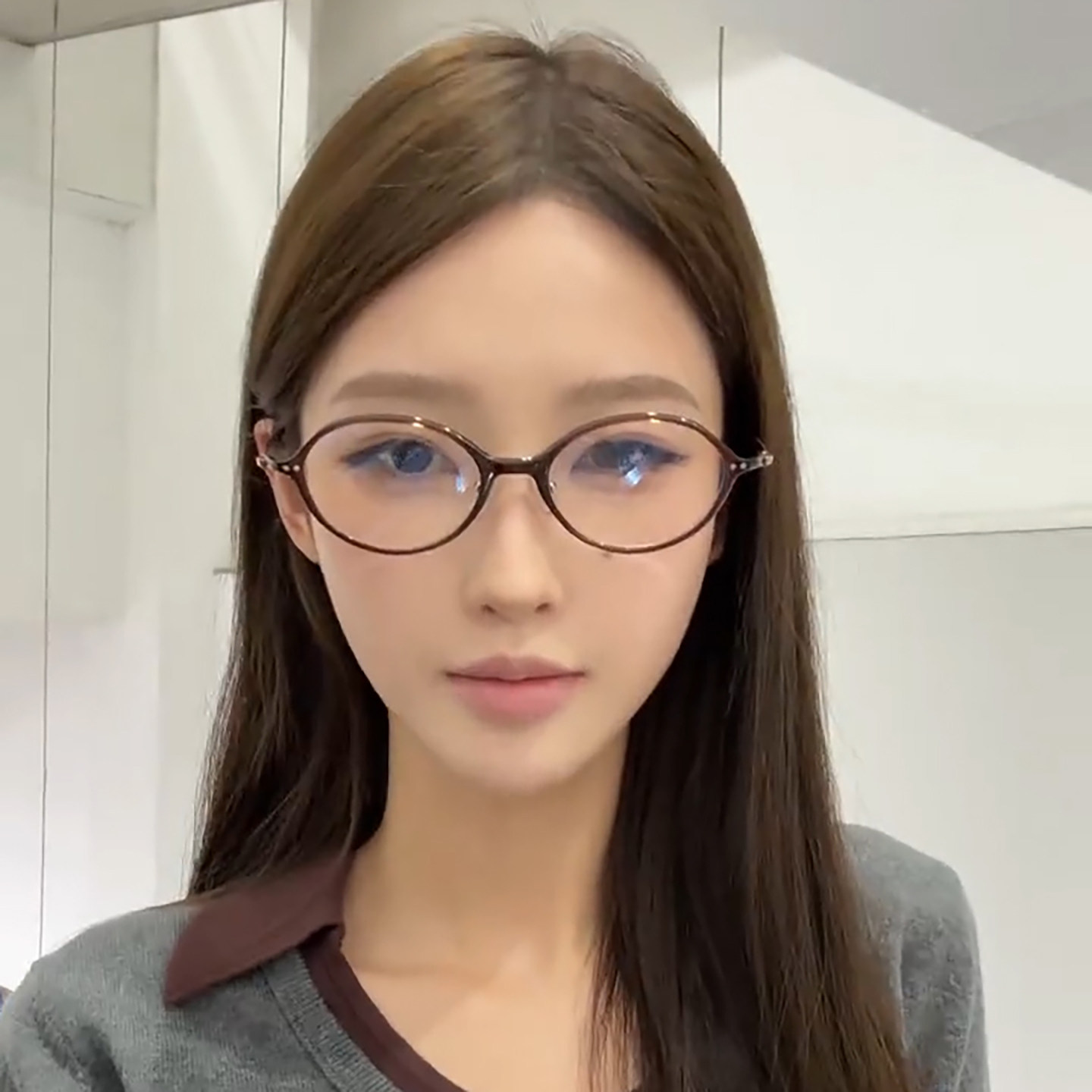茶色文艺感椭圆框眼镜女韩系超轻显脸小高级感复古平光镜可配度数