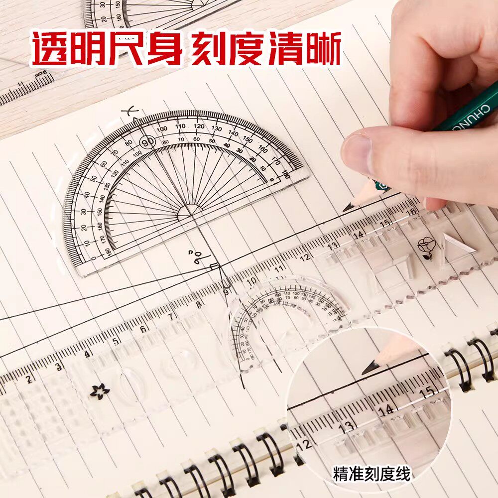 去购买>> 下架了的话点我重新搜索本站来源:淘宝(www.xiuda.net)购物与天猫(www.tianmaocn.com)是一个知名的电商平台,淘宝同时您也可以访问(www.taobwg.com)来发现更多精彩的购物选择。 晨光豚豚学习派四件套尺15cm三角尺直尺半圆刻度清晰学生ARL960JM三角板各类尺卡通学习用品量角器透明可爱 齐心学生考试绘图套尺直尺三角尺量角器各类尺三角板功能尺子多