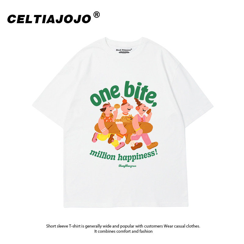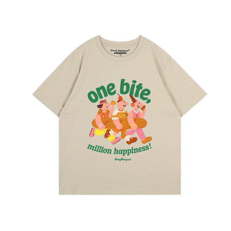 t恤女宽松正肩街头超火卡通印花半袖 奶呼呼杏色短袖 上衣 新款 夏季
