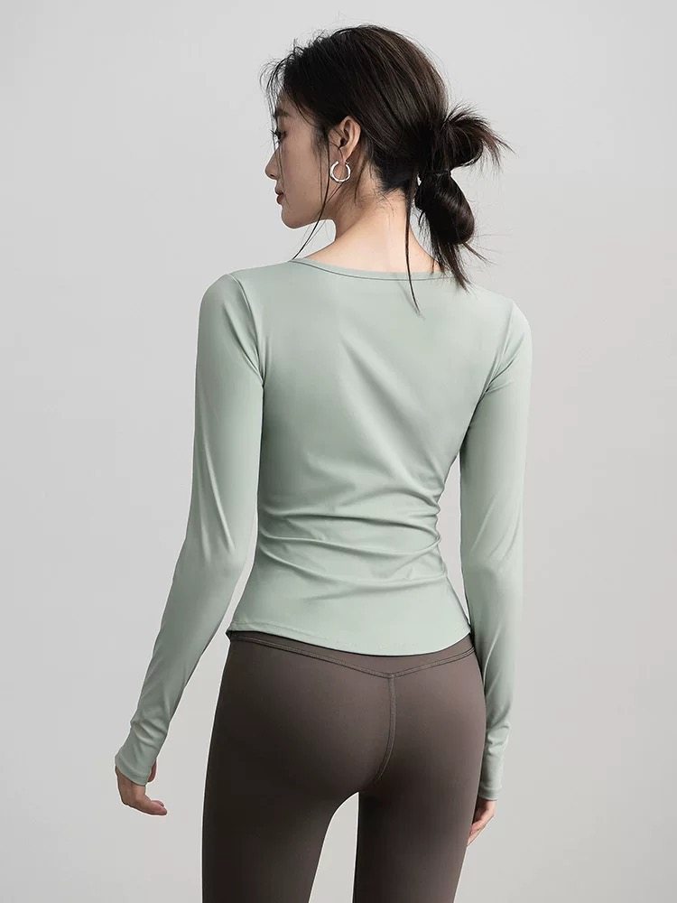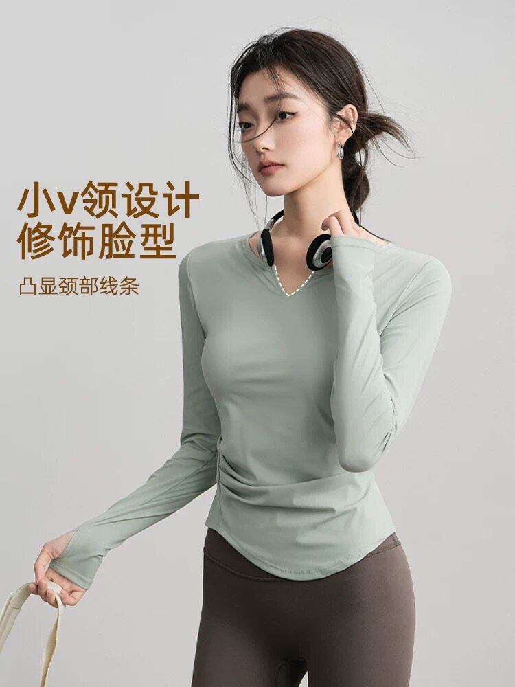 t恤速干健身服 女跑步运动上衣紧身训练长袖 新品 性感V领瑜伽服套装