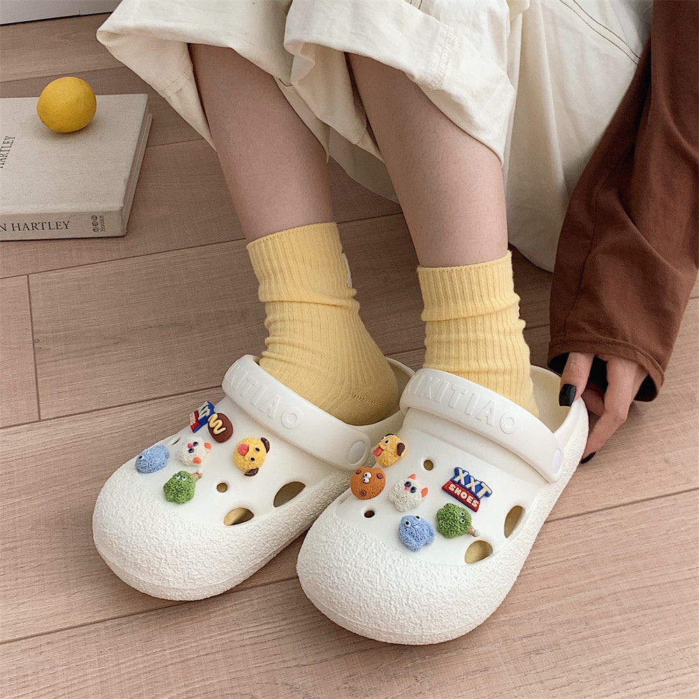 休闲沙滩凉拖鞋 细细条 户外防滑时尚 夏季 女 搞怪卡通小怪兽洞洞鞋