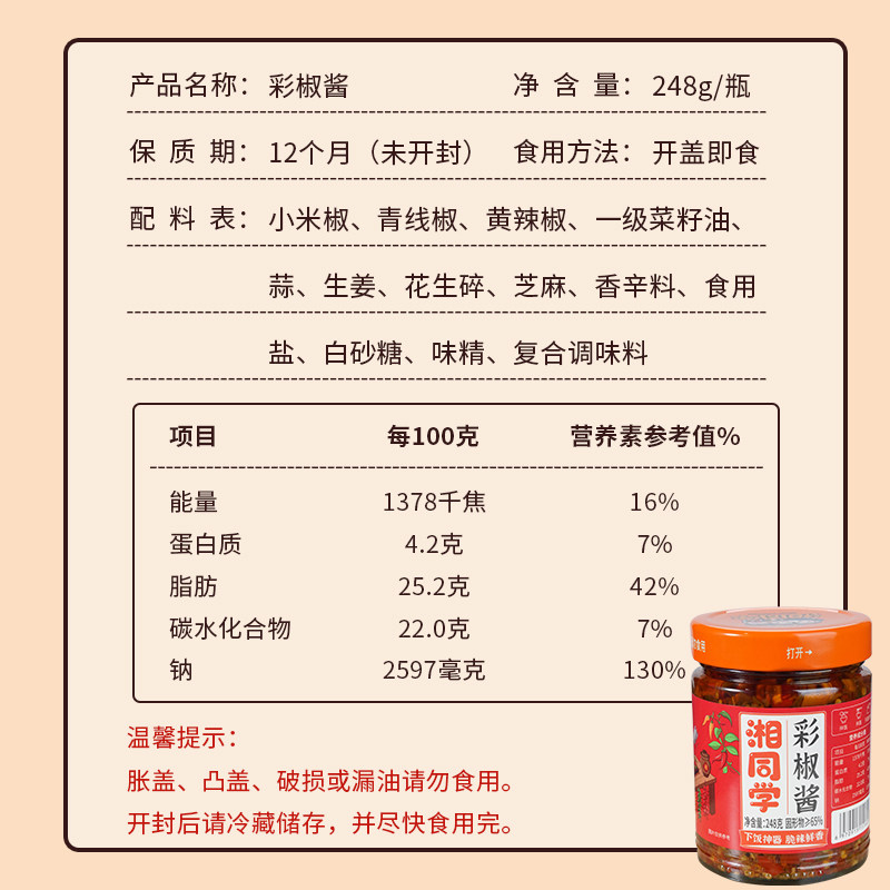 去购买>> 下架了的话点我重新搜索本站来源:淘宝(www.xiuda.net)购物与天猫(www.tianmaocn.com)是一个知名的电商平台,淘宝同时您也可以访问(www.taobwg.com)来发现更多精彩的购物选择。 玉梦贵州糊辣椒面蘸水木姜子味柴火酸汤火锅蘸料酱袋装 特辣辣椒粉 干饭兄弟湘集1 号鲜椒酱下饭菜辣椒酱湖南特产蒜蓉拌面饭剁彩椒酱 中邦蒜蓉辣椒酱230g拌饭火锅蘸料牛杂肠粉微辣调料辣酱官方旗舰店 TABASCO辣椒仔辣椒酱低卡辣酱辣椒剁椒酸辣油蘸酱沙拉西餐调味汁 湖南特产辣椒酱农家剁辣椒下饭菜香辣蒜蓉剁椒酱小米椒拌饭调味品 阿香婆牛肉酱陕西特产牛肉酱夹馍拌饭酱干锅酱下饭拌面酱辣椒酱 TABASCO辣椒仔60ml低脂低卡辣椒酱调味料无油蘸料酱 百亿补贴 湖南特产香辣柴火鱼干下饭菜拌饭酱农家自制剁椒小鱼仔辣椒酱瓶装 湖南特产辣妹子辣椒酱香辣豆瓣酱火锅蘸料底料商用蒜香餐饮调味酱 香辣彩椒酱蒜蓉剁椒酱辣椒酱下饭菜湖南特产剁辣椒双椒酱拌饭爆辣 炒米线帽子杂酱云南特产 万和昭通酱150克沙拉酱辣椒酱 昭通酱 英潮魔鬼辣酱虎邦辣椒酱特爆辣下饭菜鲜椒青椒香辣酱拌饭剁椒酱料 正宗遵义糍粑辣椒海椒酱贵州特产火锅底料贵阳辣子鸡调料500g瓶装 川丫头野山椒豆豉酱湖南特产风味豆豉香辣下饭菜辣椒酱调味拌饭酱 遇见滇西涮涮辣酱魔鬼辣椒油辣子变态辣椒油特辣超辣魔鬼辣王推荐