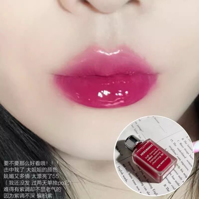 蓝调玫红唇釉新款 低饱和持久嘟嘟唇水光镜面口红不沾杯不掉色显白