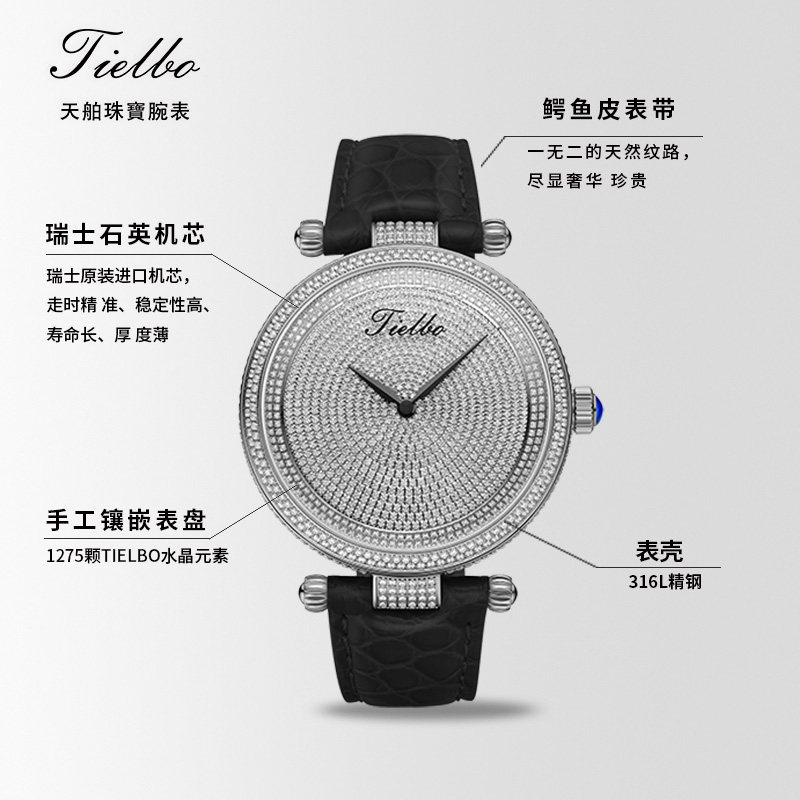 天舶TIELBO 潮流真皮手表石英防水手腕表 T128满天星高端气质时尚