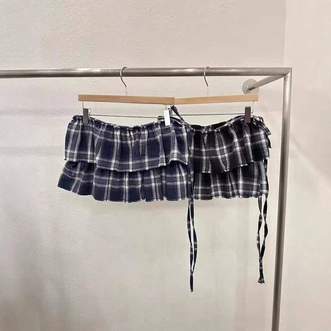 Skirts Plaid Lace With Mini Edge Tassels Layers Double