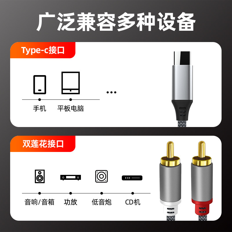 萨科雷typec手机平板转rca红白音频线双莲花一分二音响转接线适用华为三星苹果小米荣耀typec笔记本手机通用