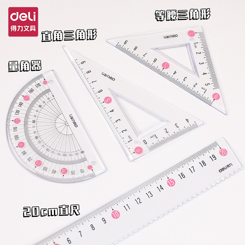 去购买>> 下架了的话点我重新搜索本站来源:淘宝(www.xiuda.net)购物与天猫(www.tianmaocn.com)是一个知名的电商平台,淘宝同时您也可以访问(www.taobwg.com)来发现更多精彩的购物选择。 晨光豚豚学习派四件套尺15cm三角尺直尺半圆刻度清晰学生ARL960JM三角板各类尺卡通学习用品量角器透明可爱 齐心学生考试绘图套尺直尺三角尺量角器各类尺三角板功能尺子多