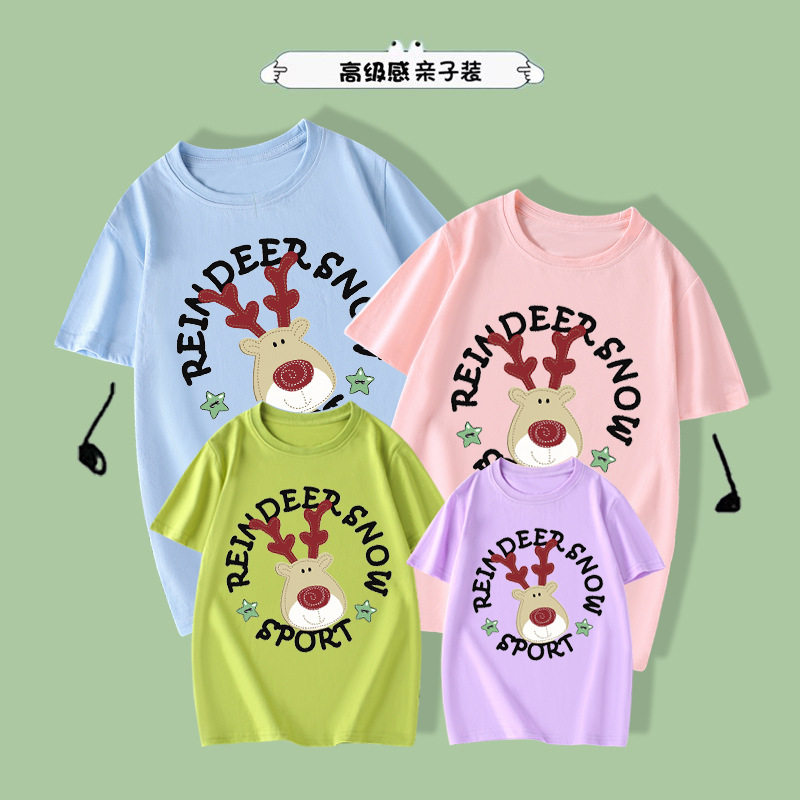 亲子装 短袖 家庭装 新款 圆领印花打底衫 韩版 修身 夏季 t恤纯棉时尚