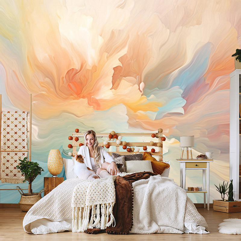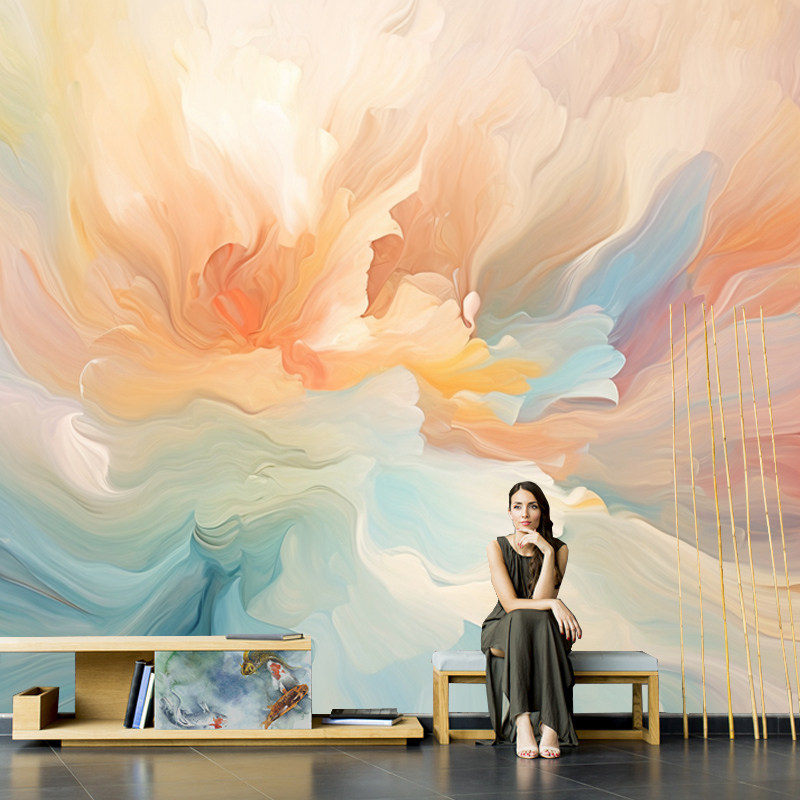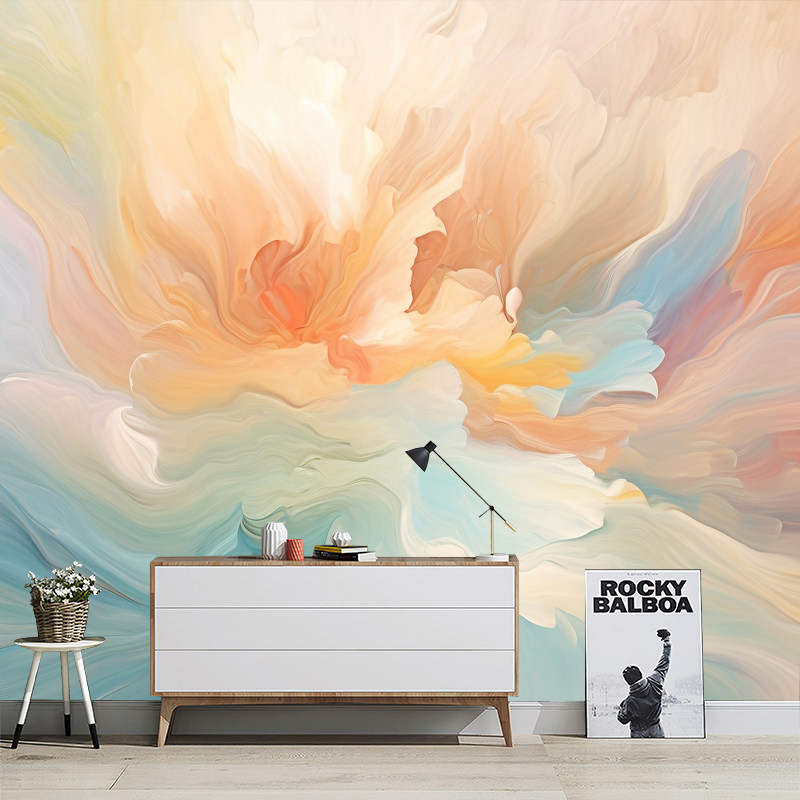 北欧抽象柔光涂鸦唯美轻奢壁纸客厅沙发电视背景墙纸无缝墙布定制