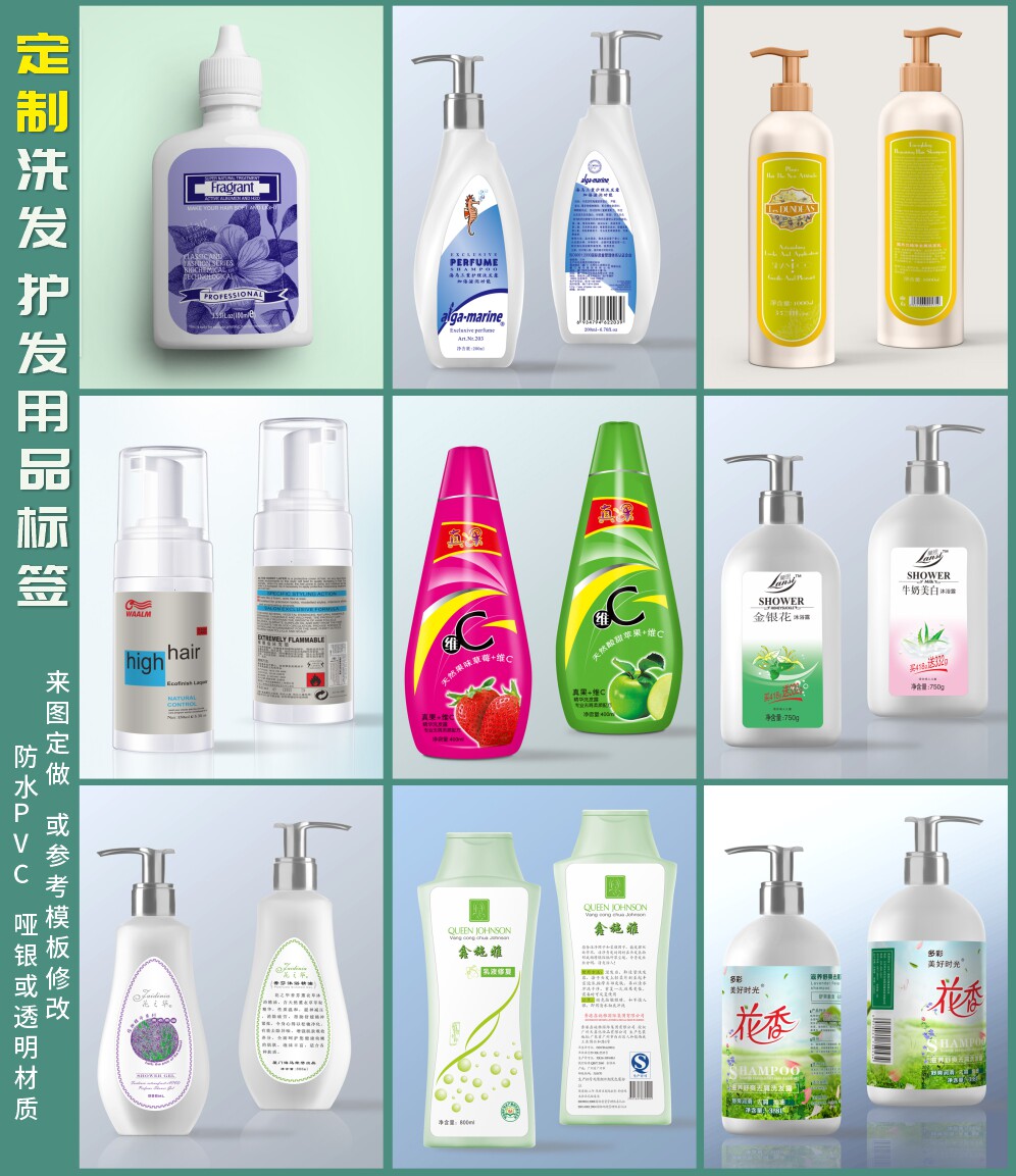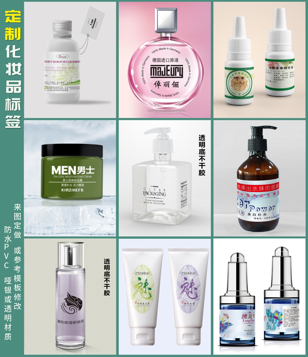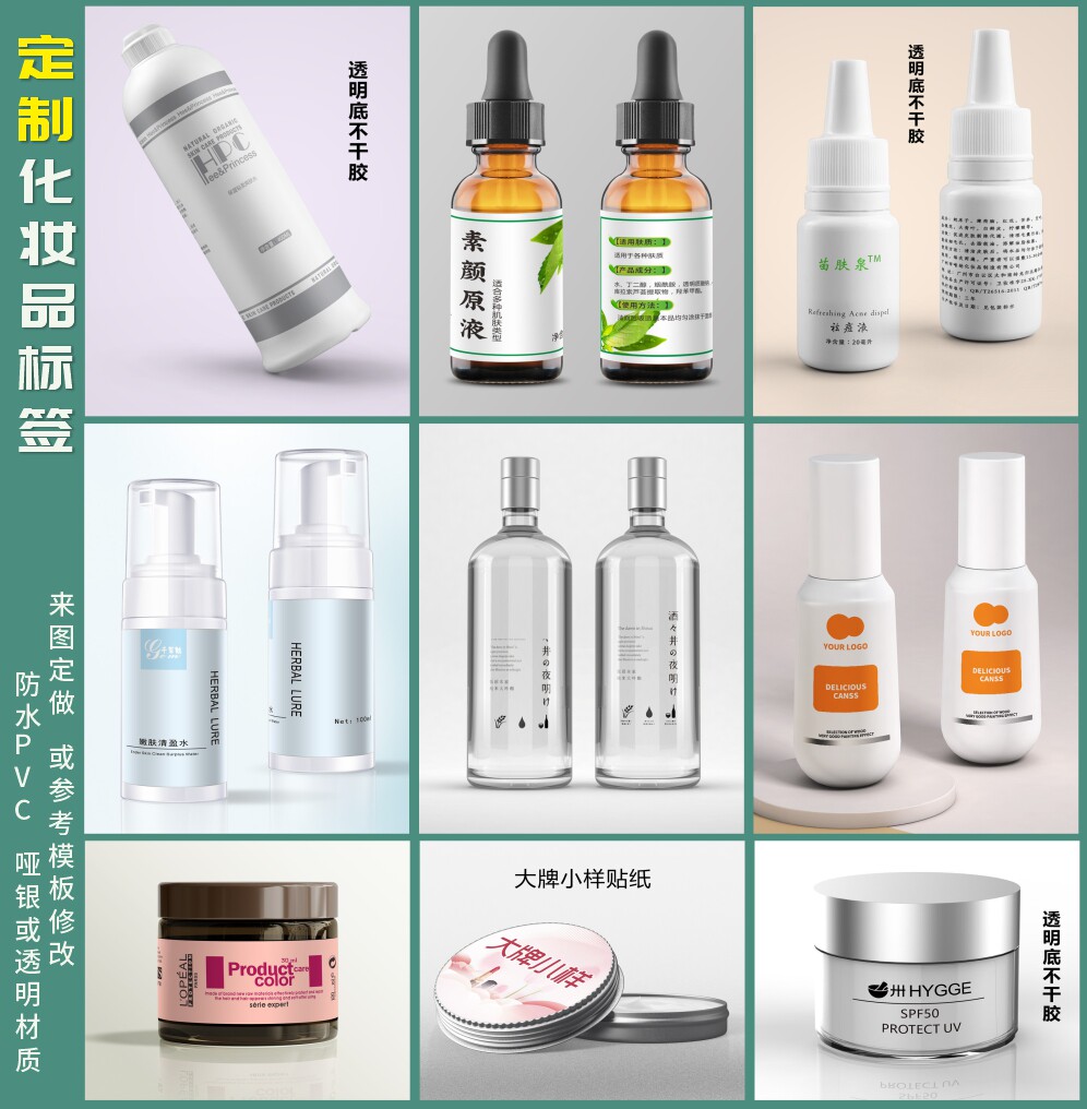 定制印刷化妆品不干胶标签 贴纸43 防水透明PVC洗护发沐浴用品包装