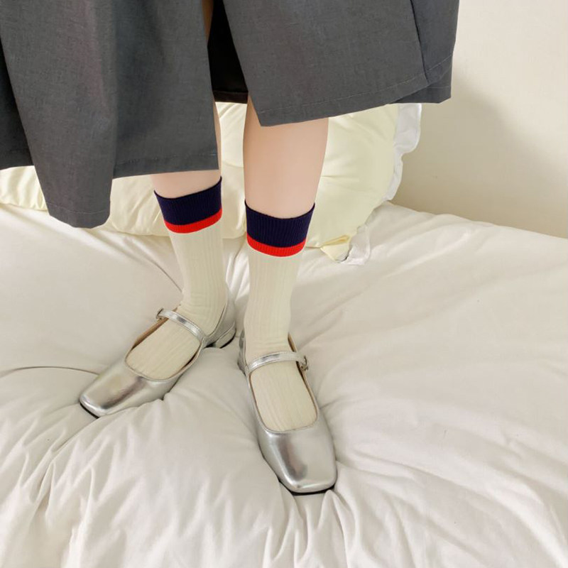 撞色袜子女中筒袜ins潮春秋纯棉韩版 日系复古咖色堆堆袜秋冬长袜