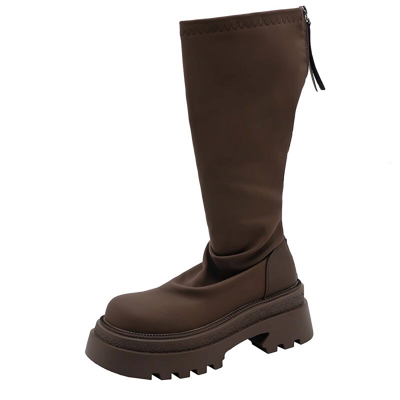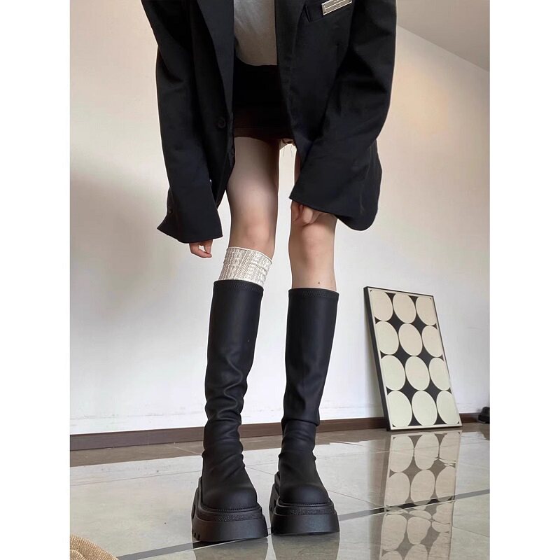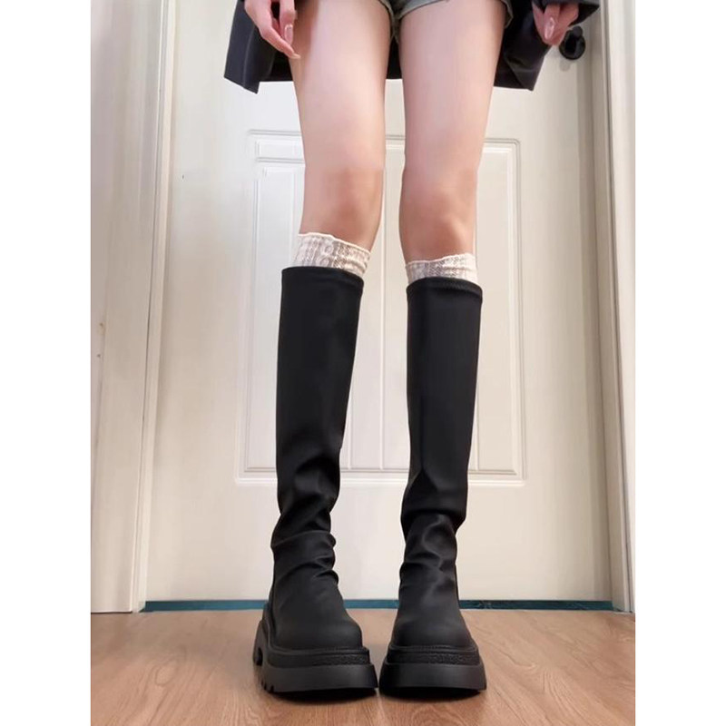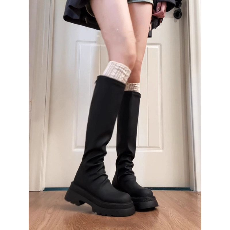 2026新款 长靴女厚底高筒显瘦秋冬中筒靴堆堆靴小个子瘦瘦靴子黑色