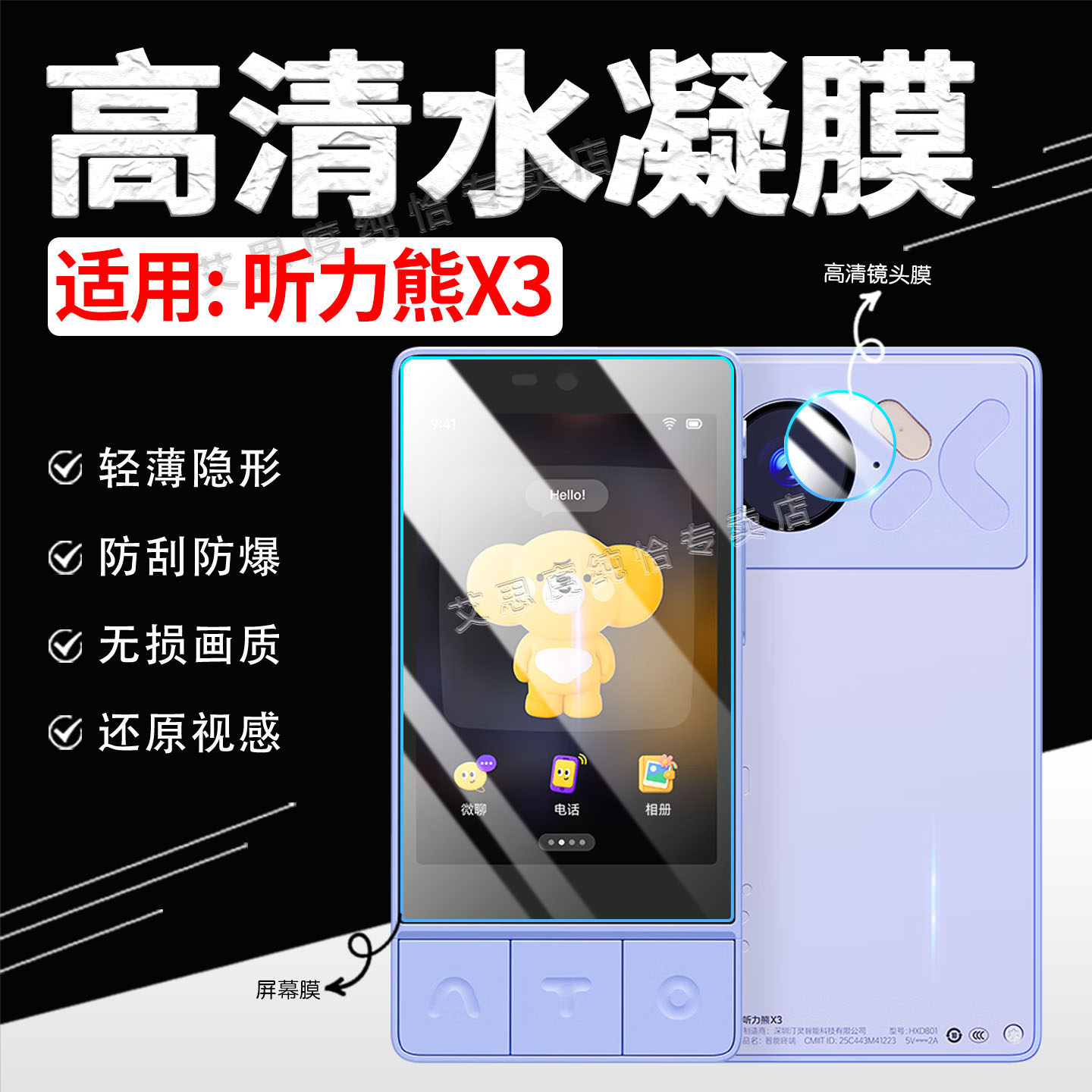 适用听力熊X3贴膜AI学伴机X3屏幕保护膜 3.5英寸大屏学习手机x3高清水凝膜防刮防爆智能陪伴学习机X3非钢化模