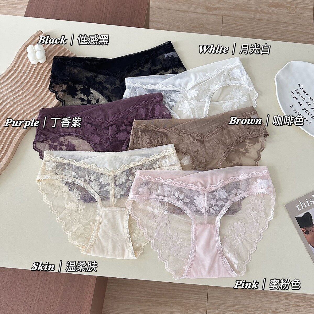氛围感纯欲V型腰头温柔三角裤 高级御姐风女士蕾丝内裤 女 轻奢 法式