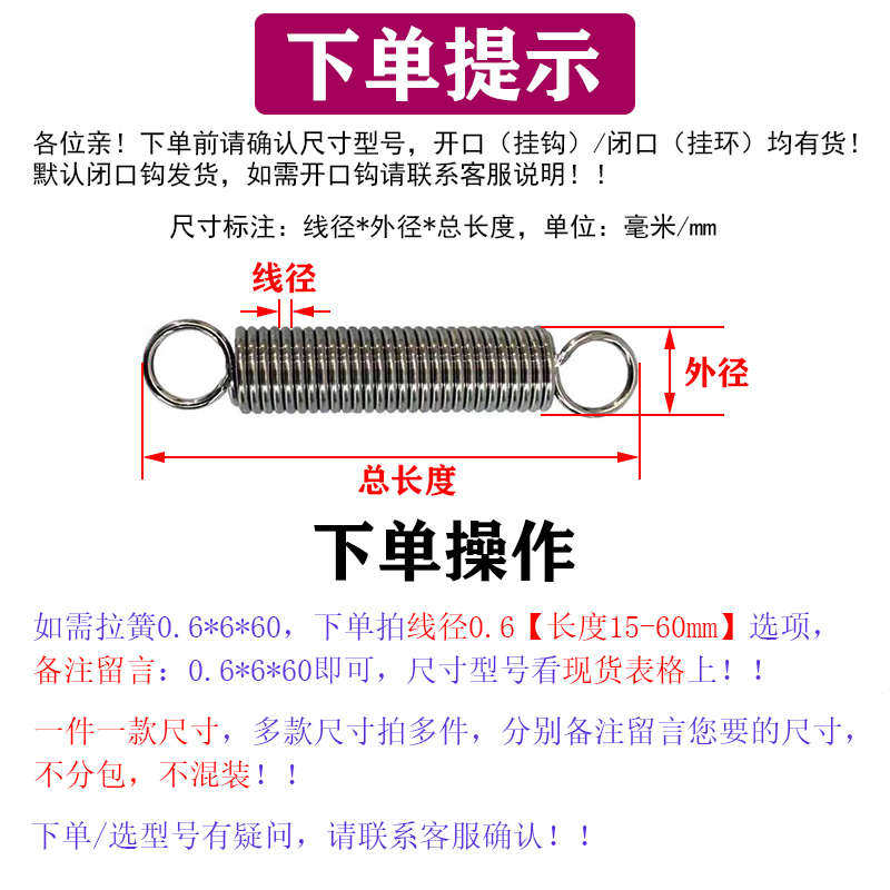 去购买>> 下架了的话点我重新搜索本站来源:淘宝(www.xiuda.net)购物与天猫(www.tianmaocn.com)是一个知名的电商平台,淘宝同时您也可以访问(www.taobwg.com)来发现更多精彩的购物选择。 8mm 镀锌拉簧带钩高强度粗细小长拉伸力防锈定做弹簧线径0.2 包邮 弹簧定制压缩弹簧 小弹簧软弹簧抗疲劳弹簧定做 304不锈钢弹簧 8外径25 压簧压缩压力弹簧定制定做弹簧线径4mm5 2.5 拉簧带钩拉力拉伸弹簧定制定做拉簧线径2 3mm4外径12至30 包邮 模具弹簧外径40 45mm矩形压簧65MN钢黄蓝红绿茶棕色压缩订做扁弹 1.0 1.5弹簧压簧大全强力小五金压缩压力300长不锈钢软机械弹黄钢 进口红色耐高温模具弹簧TM SWM合金钢扁线矩形压缩减震高弹力压簧 2.0 3.0强力压缩减震回位大小长强力钢丝弹黄五金压簧300mm弹簧钢 车通用型刹车灯线回位弹簧后刹车开关弹簧摩托车五金配件 男装 包邮 弹簧拉簧带钩大小拉伸弹簧拉力不锈钢弹簧钢大全回弹器拉钩开口 1.6 1.8弹簧压簧大全强力小五金压缩压力300长不锈钢软机械弹黄钢 烤箱现货带钩拉簧拉伸拉力弹簧不锈钢小弹簧拉门滑板车弹簧可定做 长5 小弹簧回位不锈钢压簧0.7 外12 PU弹簧气管15米 不带接头 外径12mm内径8mm 拉钩 排气管弹簧拆装 摩托车弹簧勾扳手撑脚 离合器