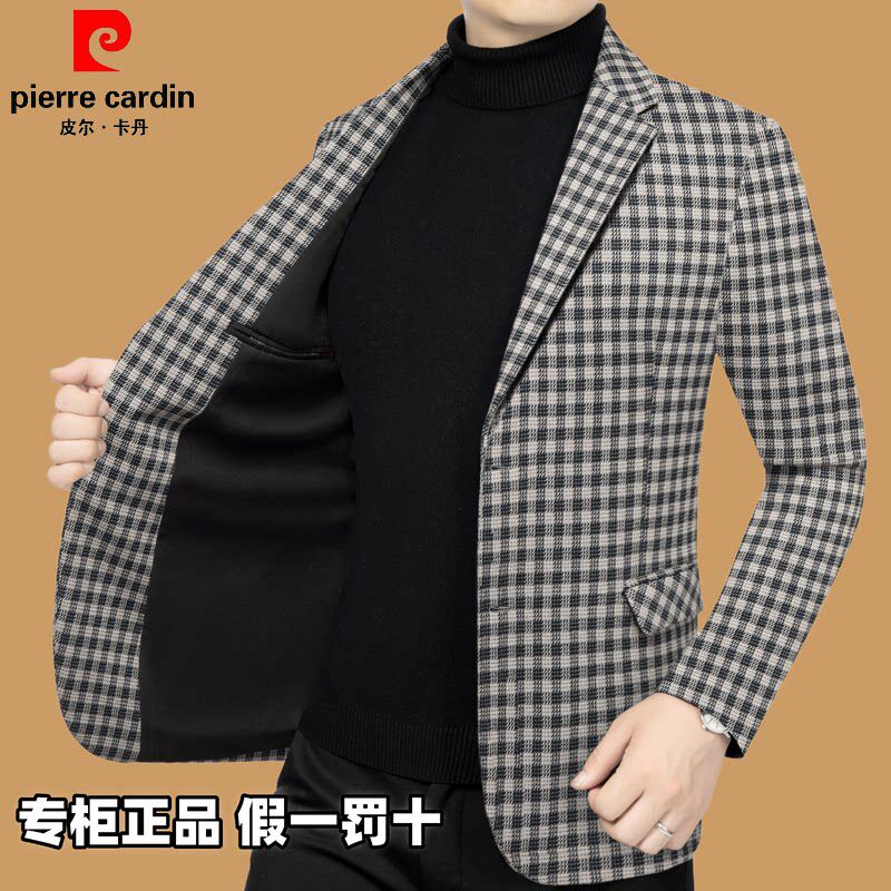 商务休闲格子西服男士 皮尔卡丹男装 春秋季 2025年新款 外套 专柜正品