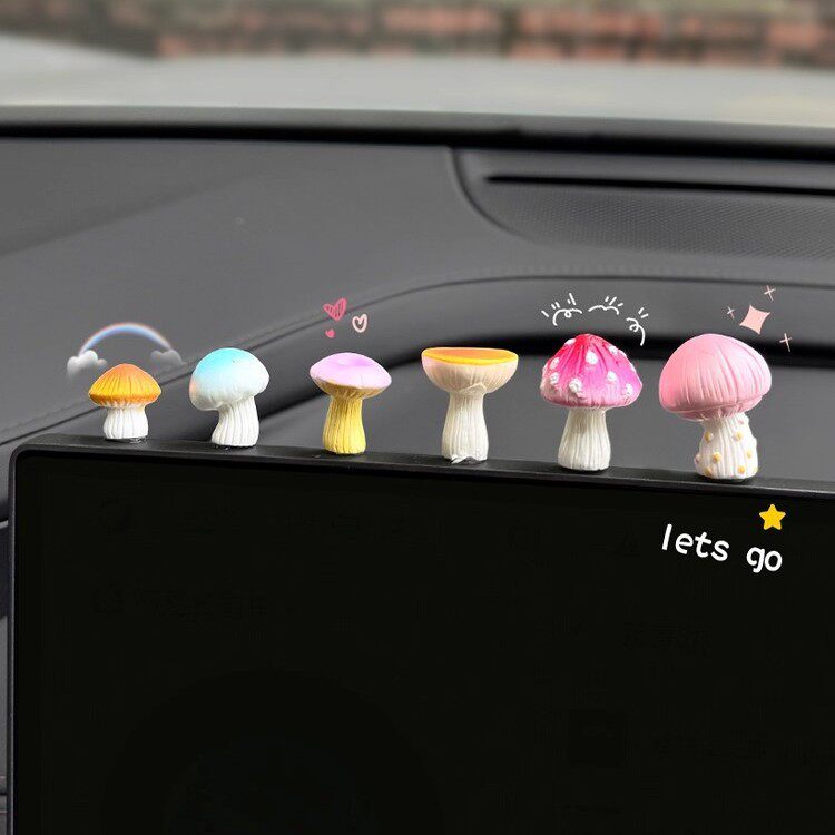 解压治愈系迷你小蘑菇汽车小摆件车载中控台显示器后视镜窗边装 饰