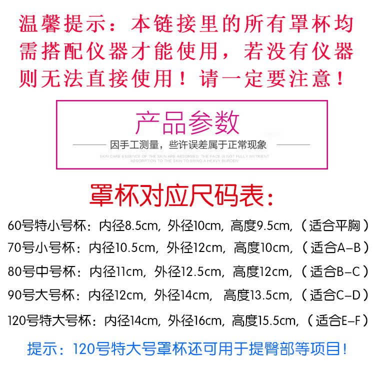 加厚超大号丰胸罩杯胸部按摩仪器杯罩丰乳房增大提臀杯美胸仪吸杯 商品标签: 发布时间:2026年03月14日 市 场 价:35 元 折 扣 价:35 元 所 在 地:广东 广州 店铺掌柜:美博城美容仪器总店 去购买>> 下架了的话点我重新搜索 本站来源:淘宝(www.xiuda.net)购物与天猫(www.tianmaocn.com)是一个知名的电商平台,淘宝同时您也可以访问(www.taobwg.com)来发现更多精彩的购物选择。