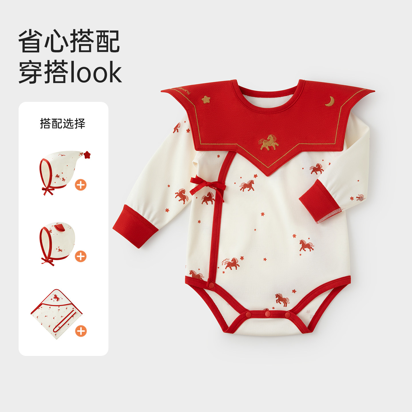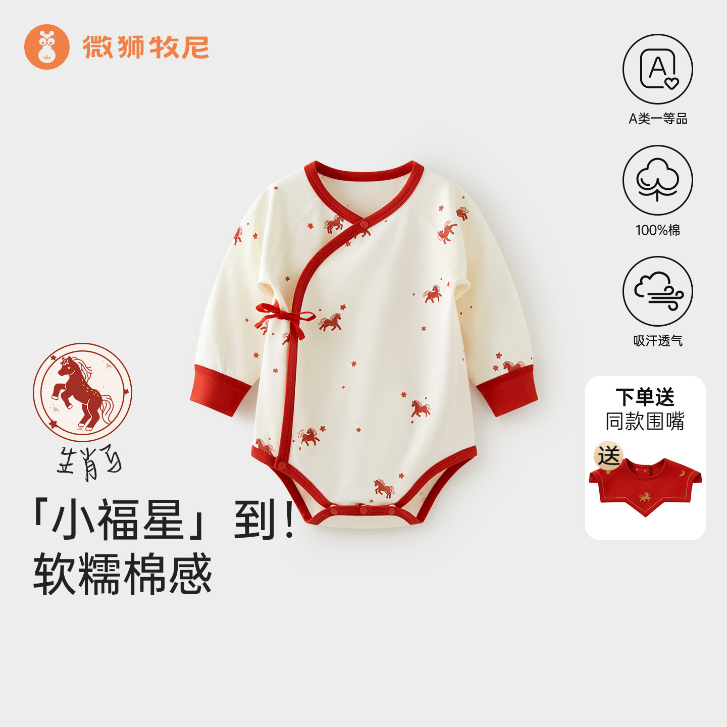 微狮牧尼马年新生婴儿包屁衣春夏款 满月宝宝三角哈衣纯棉周岁爬服