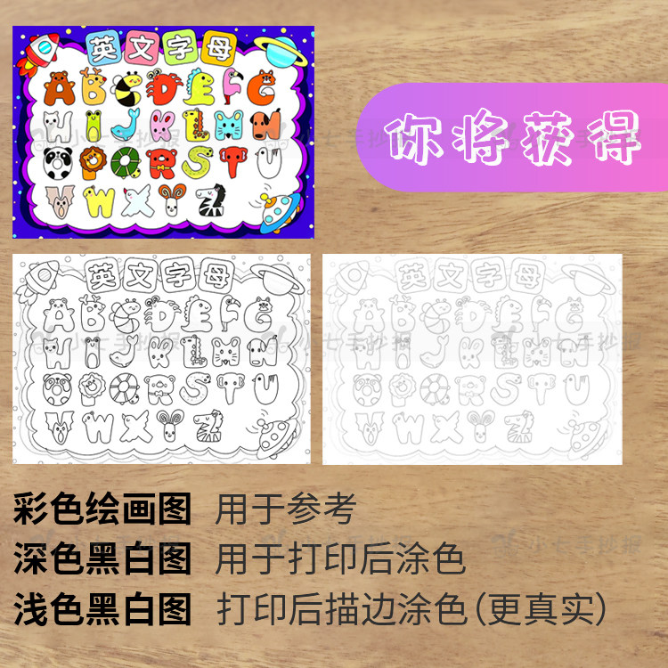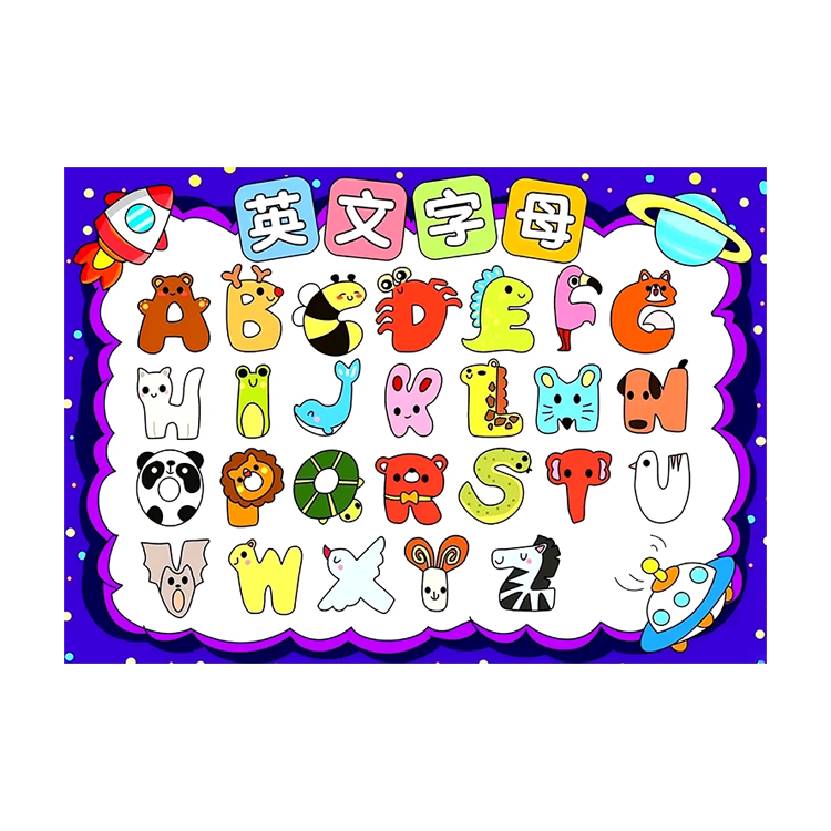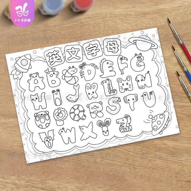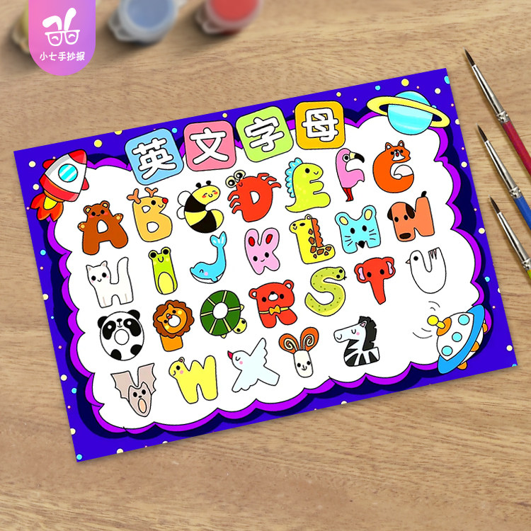 26个英文字母手抄报儿童画模板认识英语字母幼儿园创意线稿小报