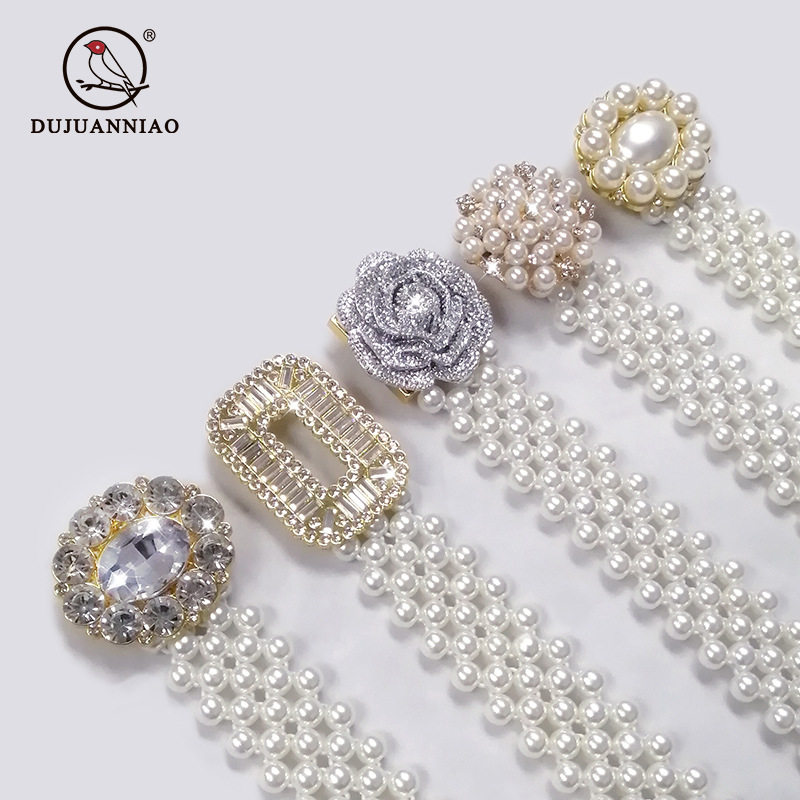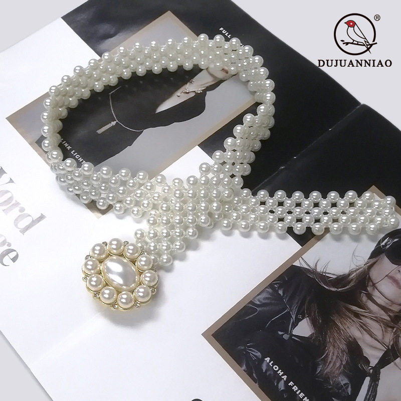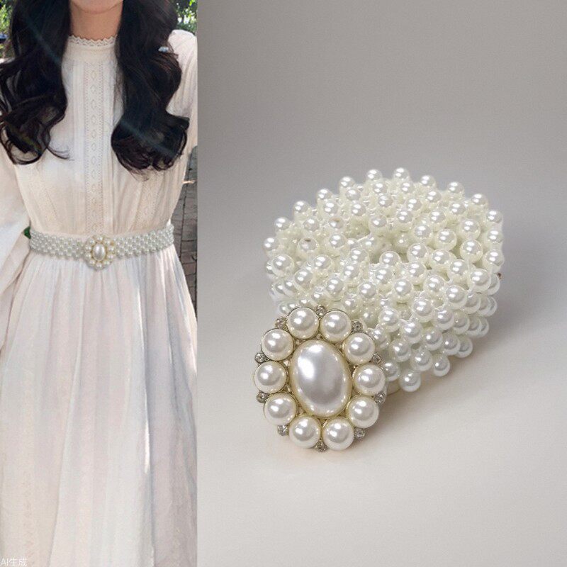嘟卡丹珍珠腰链女士镶钻弹力松紧腰带优雅简约配裙子连衣裙束腰
